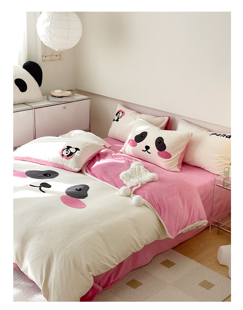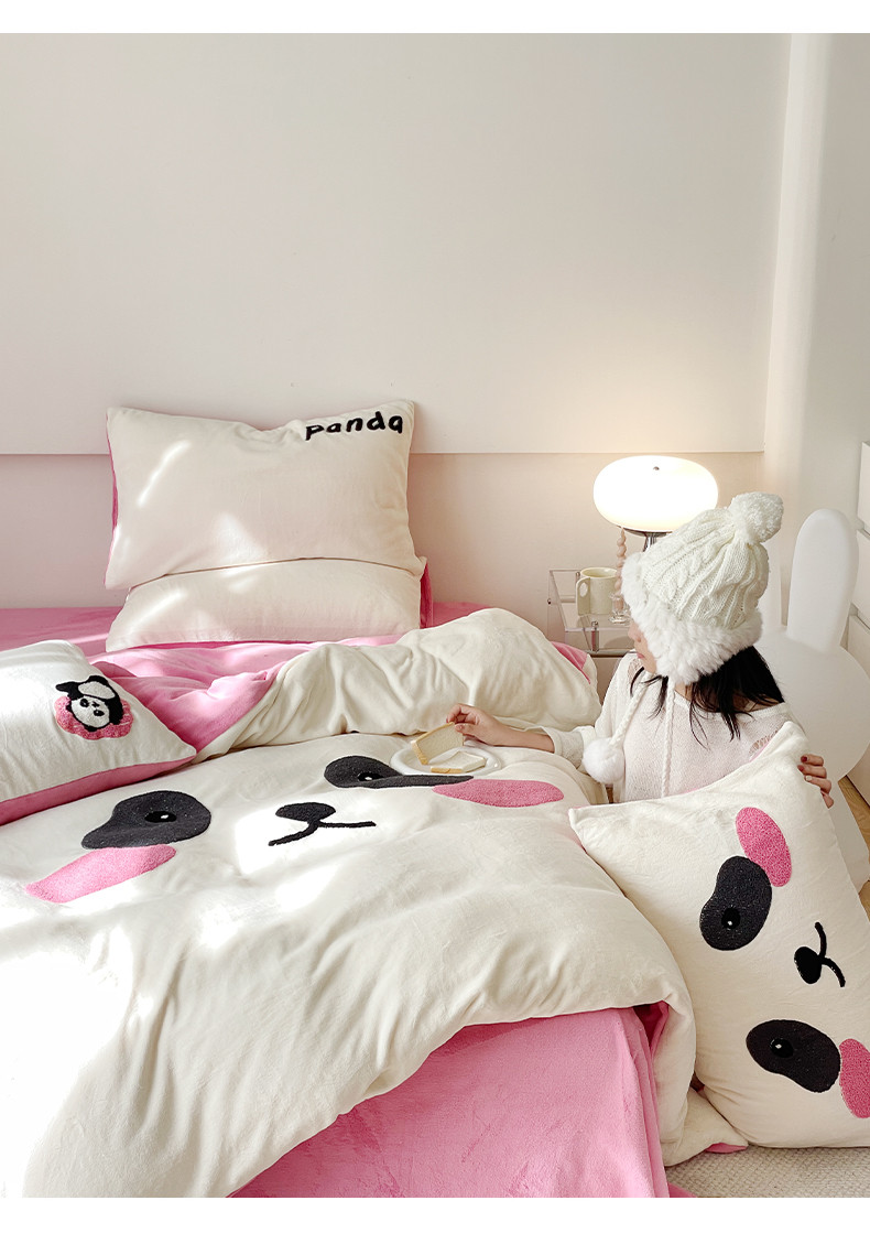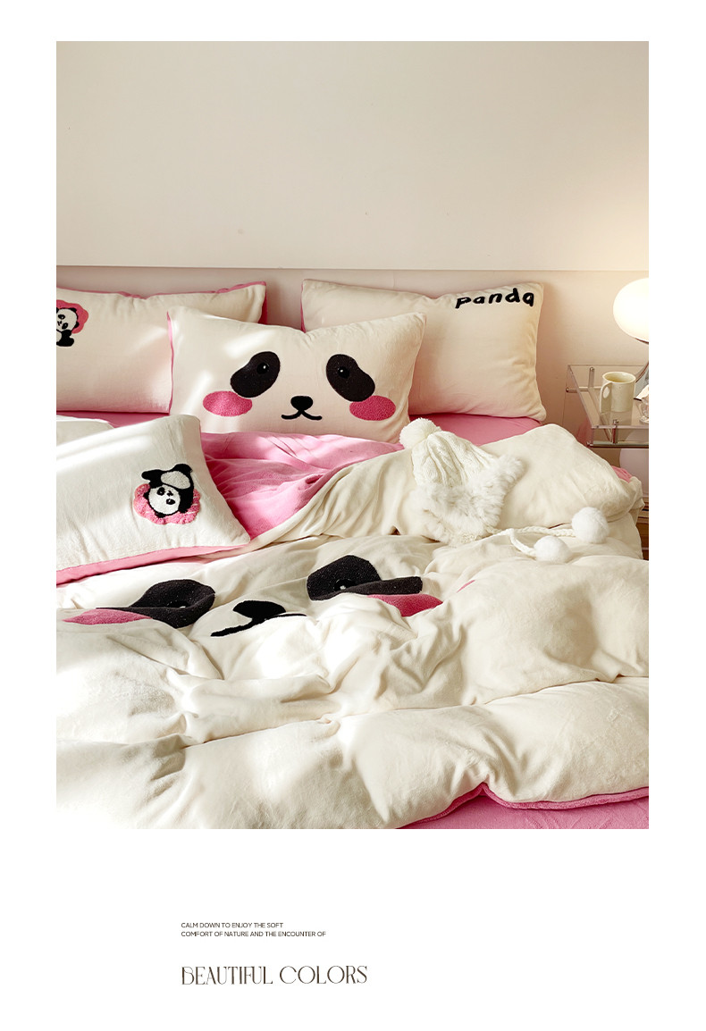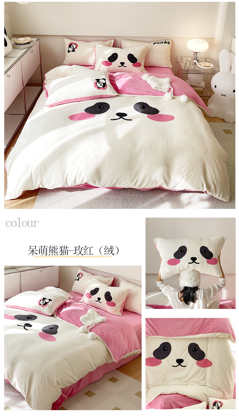 当前位置: 91家纺网 > 商品网购 > 床品套件 > 四件套 > 牛奶绒四件套 > 眠屿家纺 2023新款加厚高克重牛奶绒单边四件套 呆萌熊猫-玫红