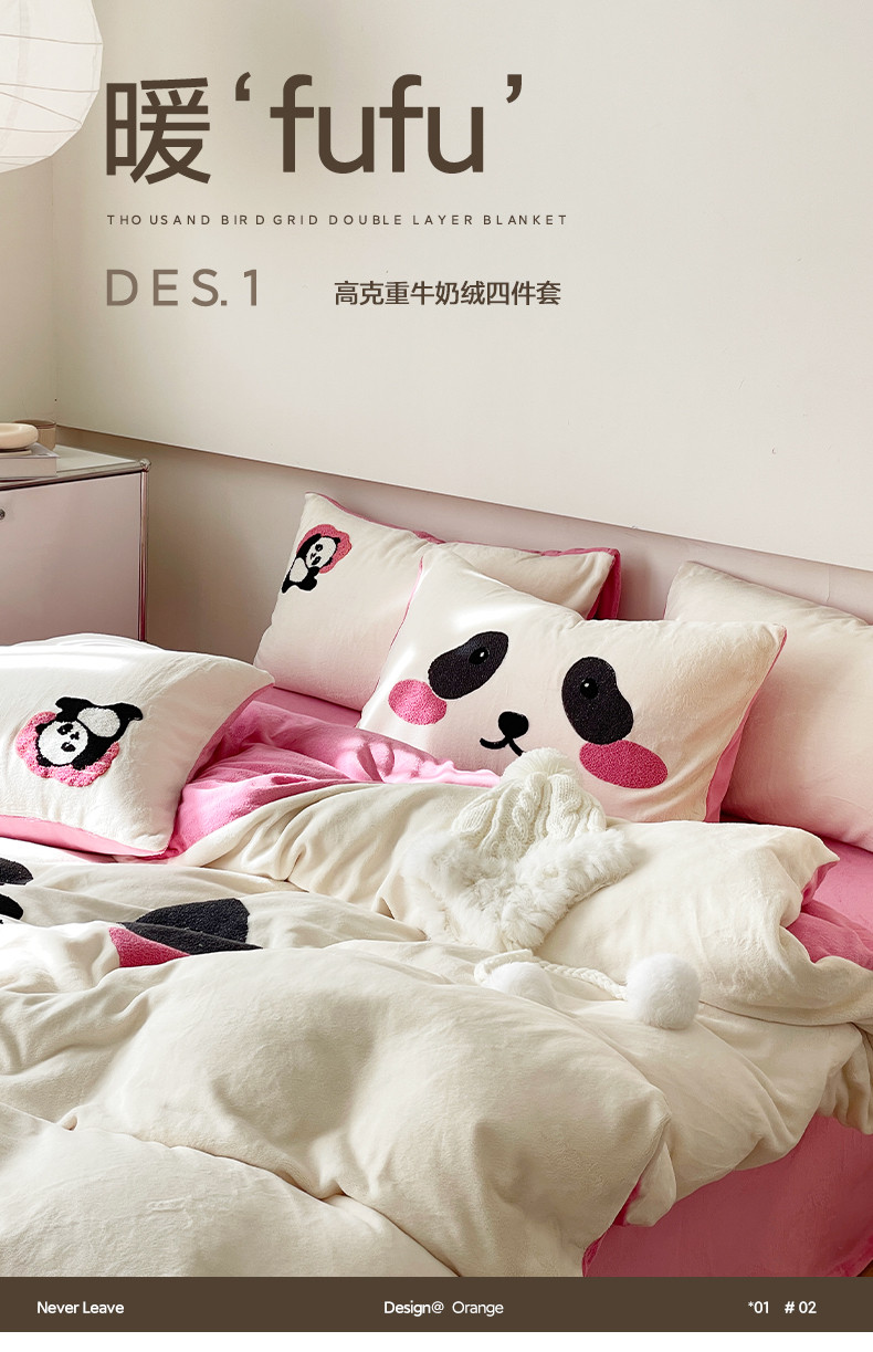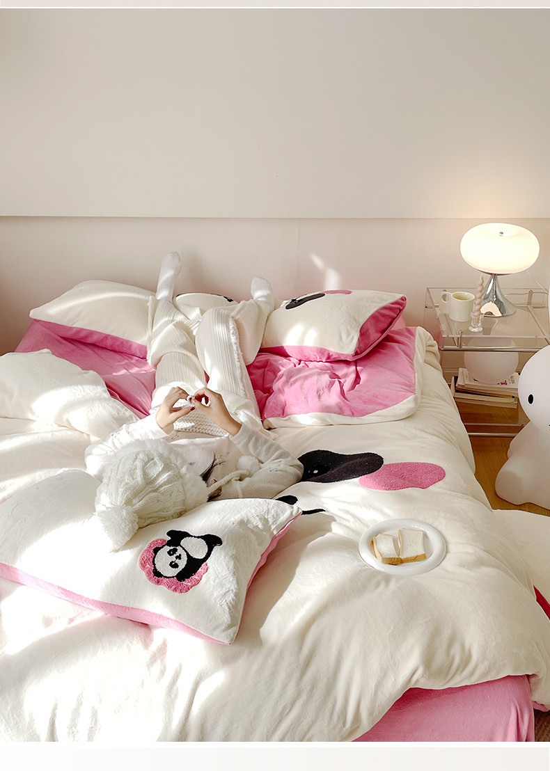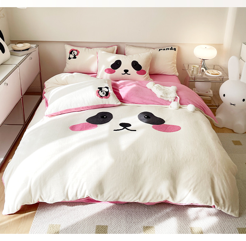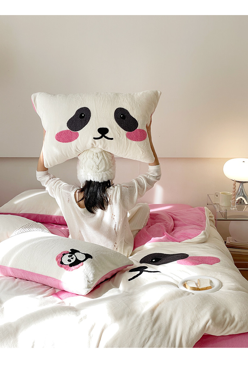 当前位置: 91家纺网 > 商品网购 > 床品套件 > 四件套 > 牛奶绒四件套 > 眠屿家纺 2023新款加厚高克重牛奶绒单边四件套 呆萌熊猫-玫红
