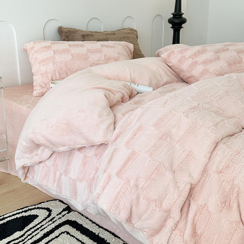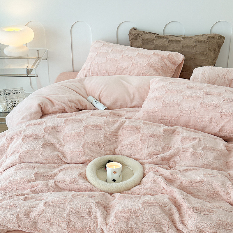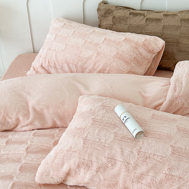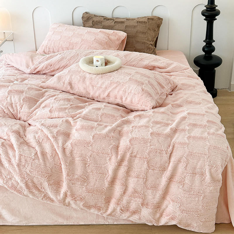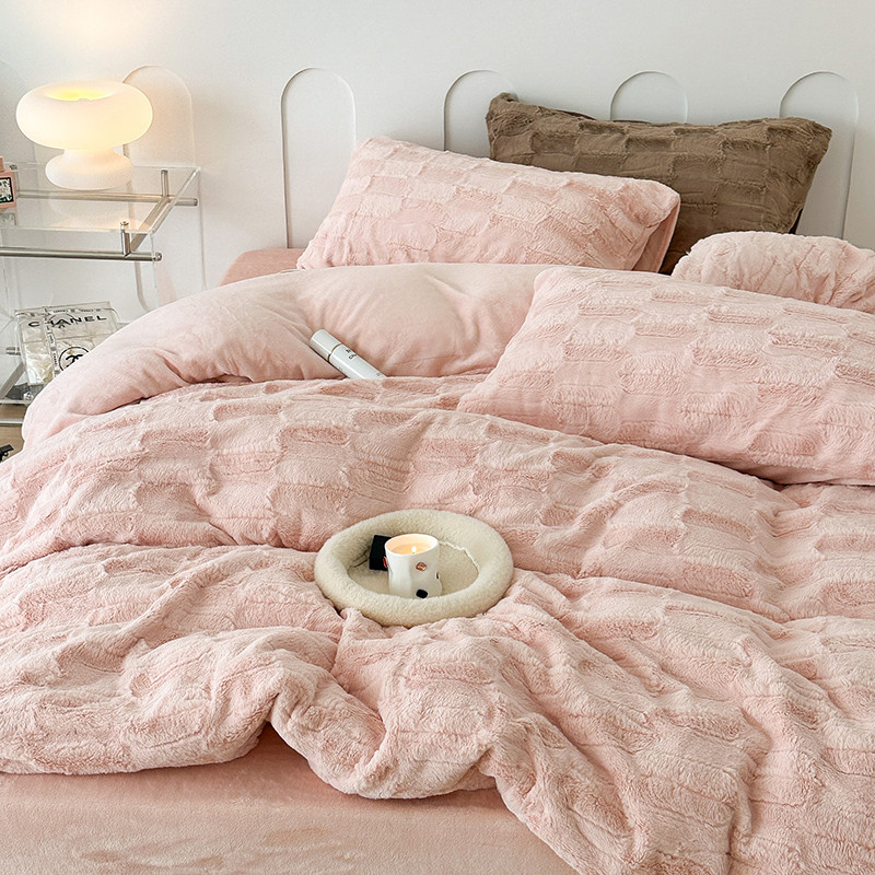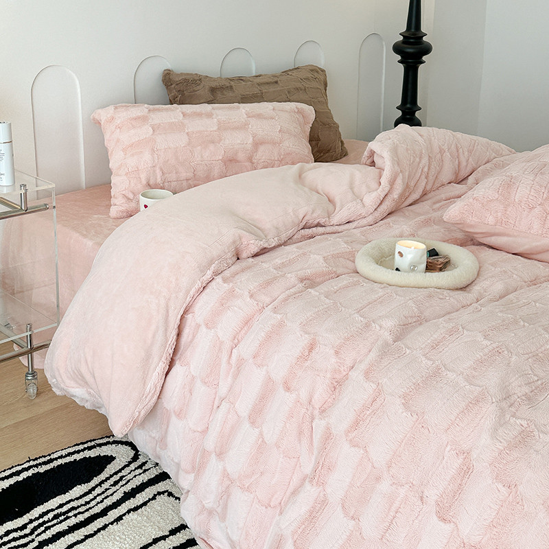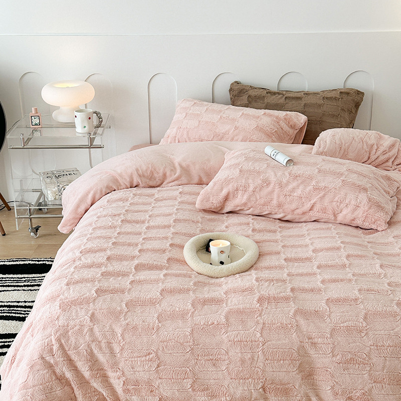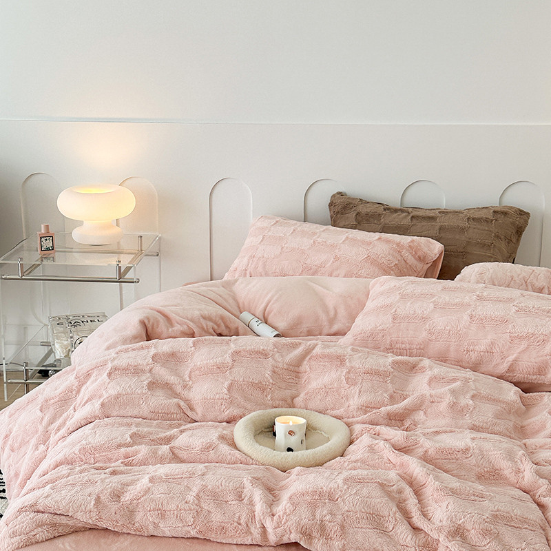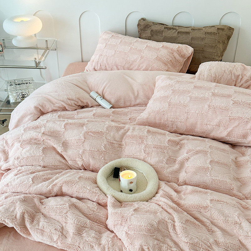 昔可家纺 2023新款ins风纯色兔兔绒兔毛四件套 格调粉