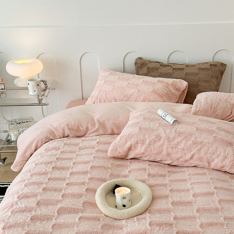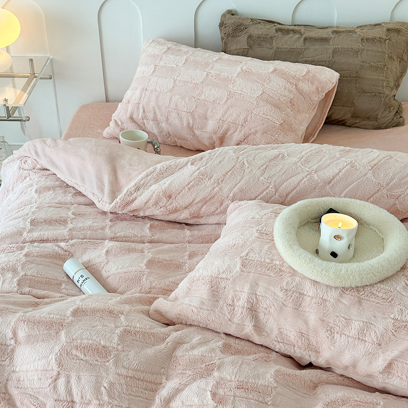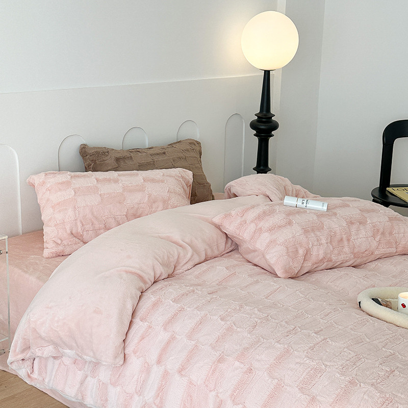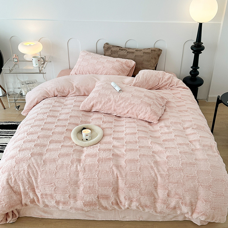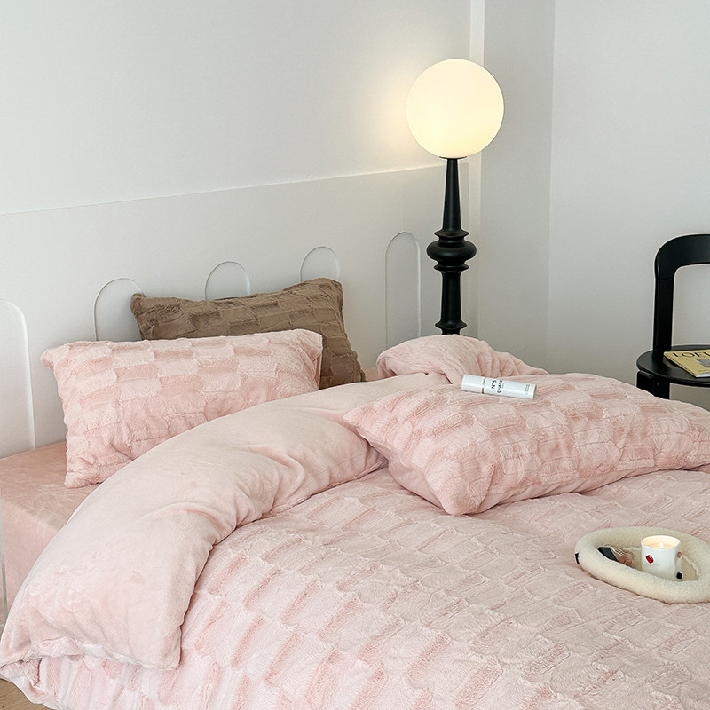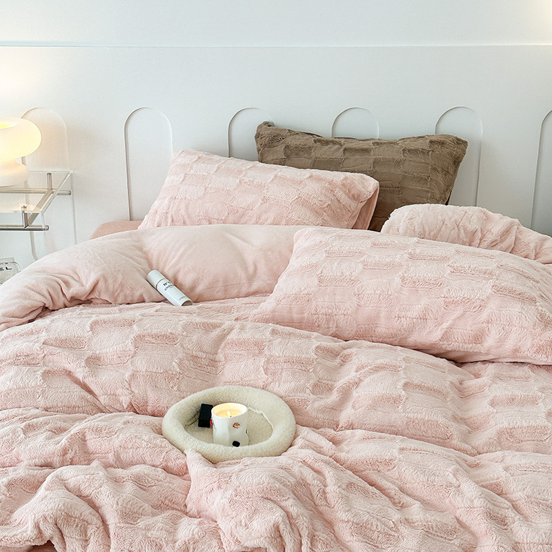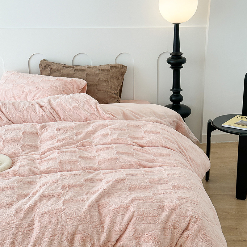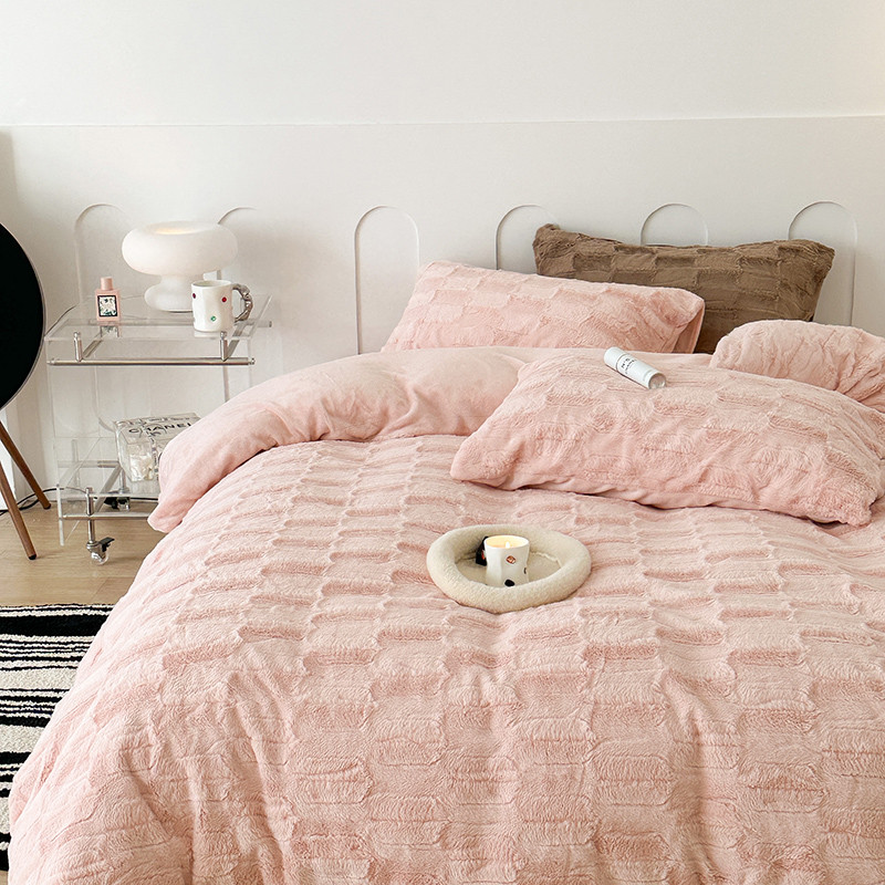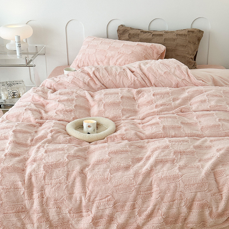 昔可家纺 2023新款ins风纯色兔兔绒兔毛四件套 格调粉