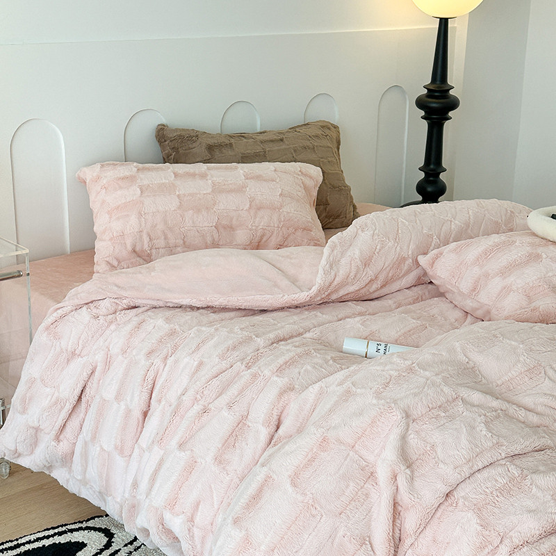 商品名称:昔可家纺 2023新款ins风纯色兔兔绒兔毛四件套 格调粉