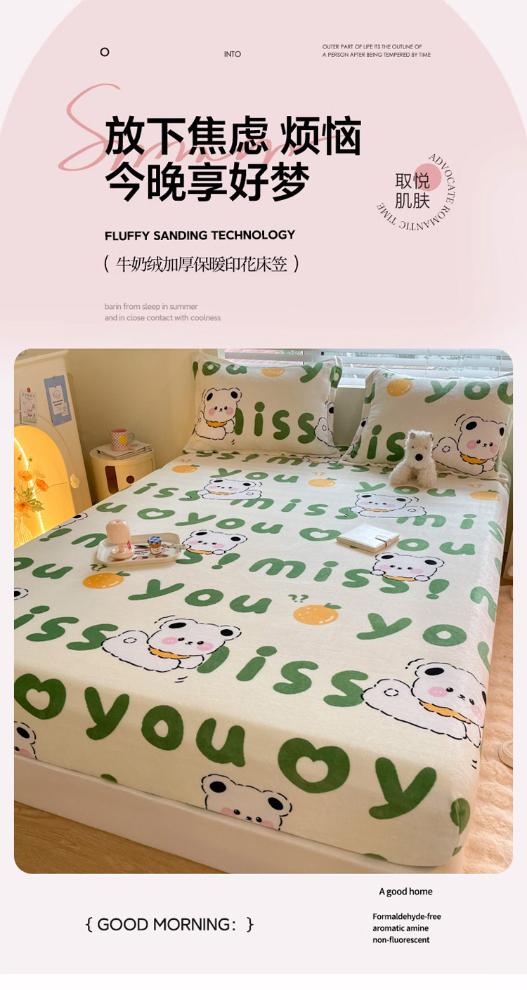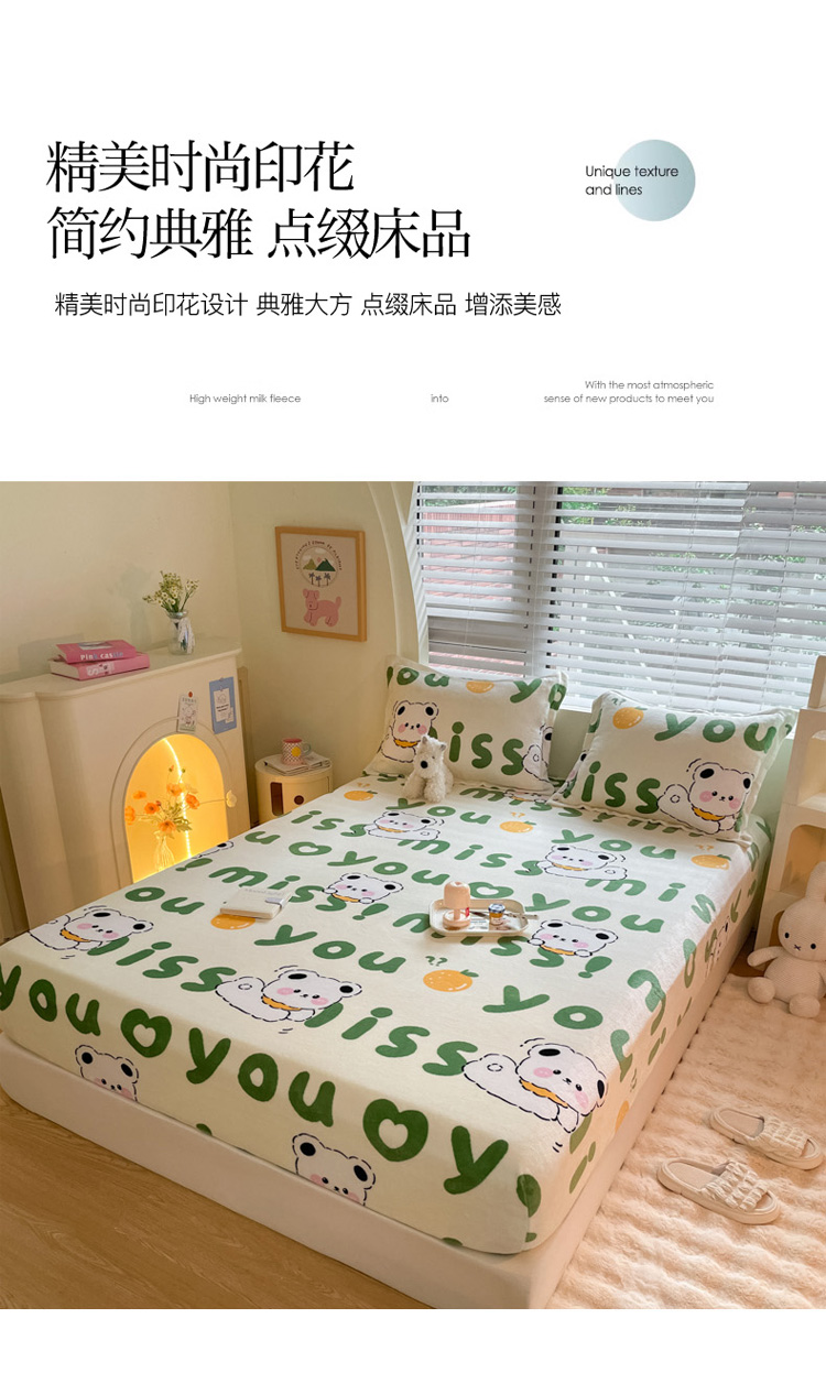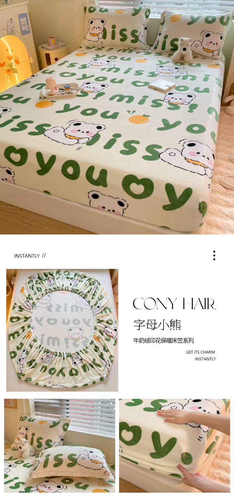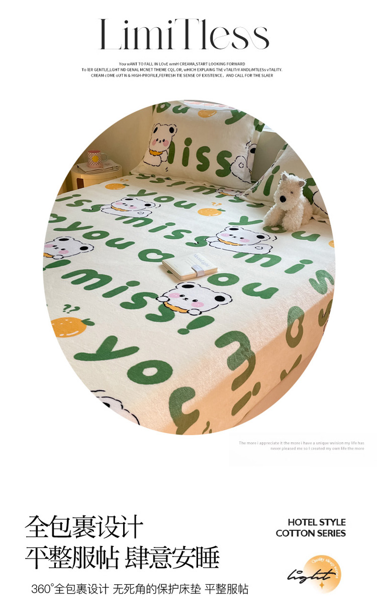 柒月家居 2023新款牛奶绒床笠 字母小熊