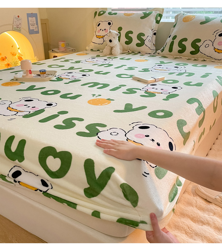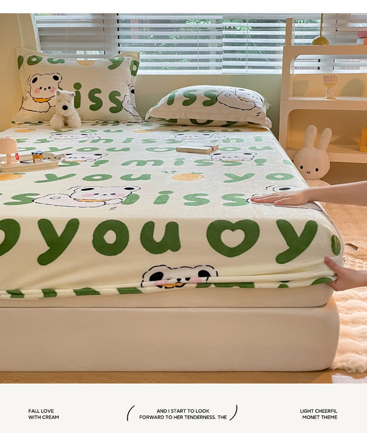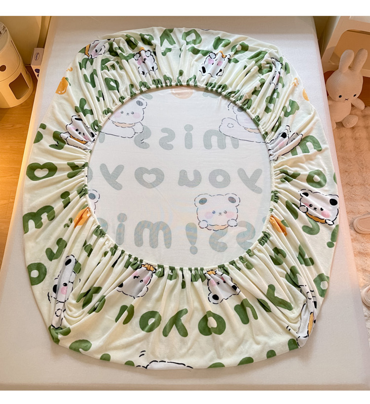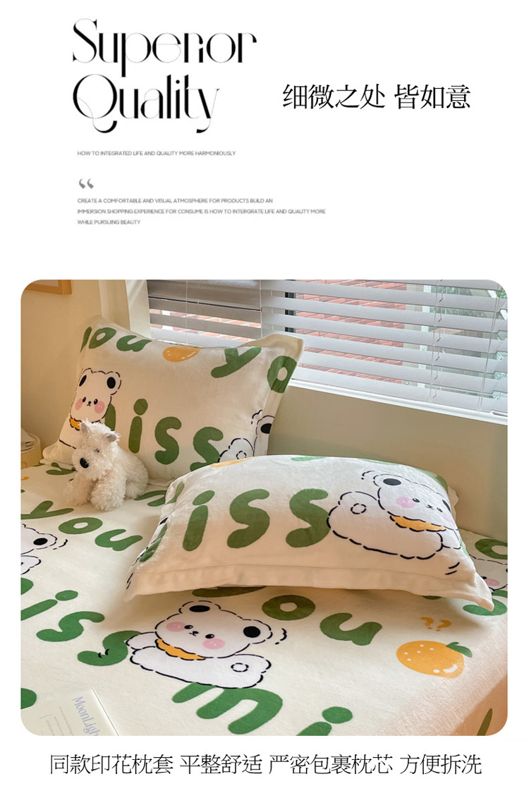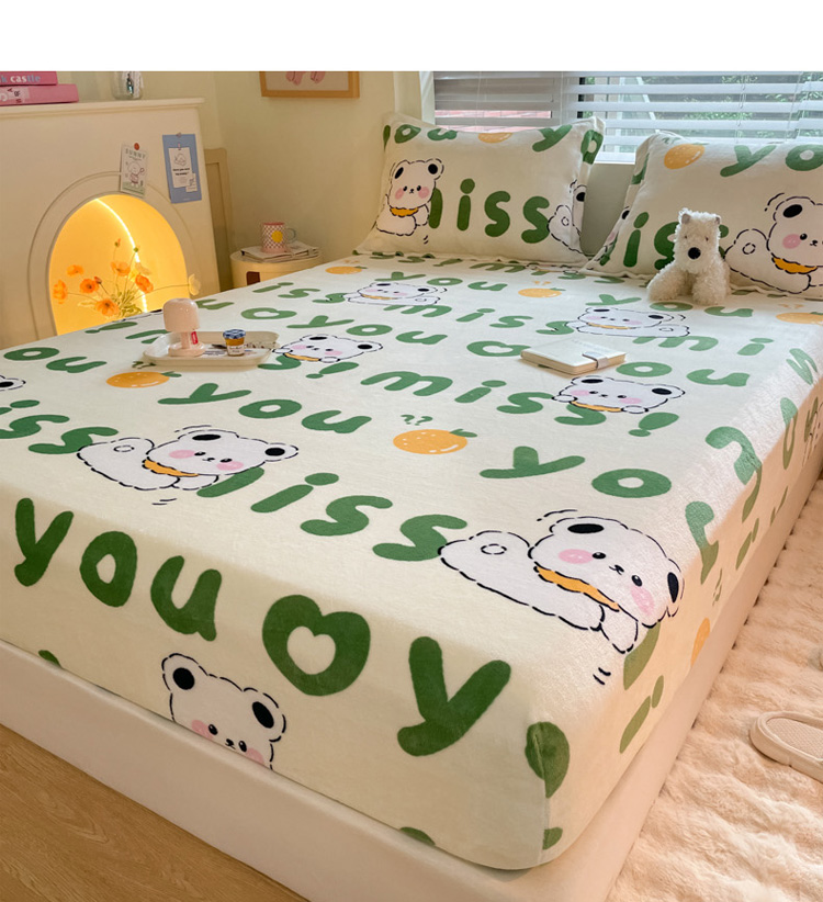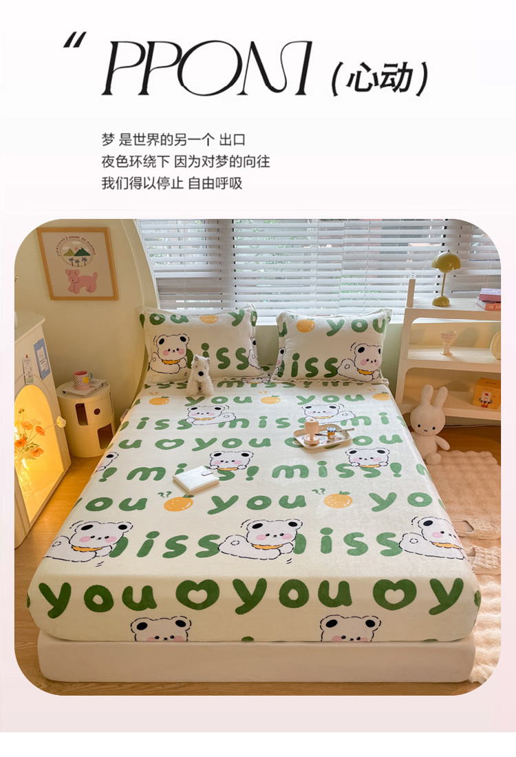 柒月家居 2023新款牛奶绒床笠 字母小熊