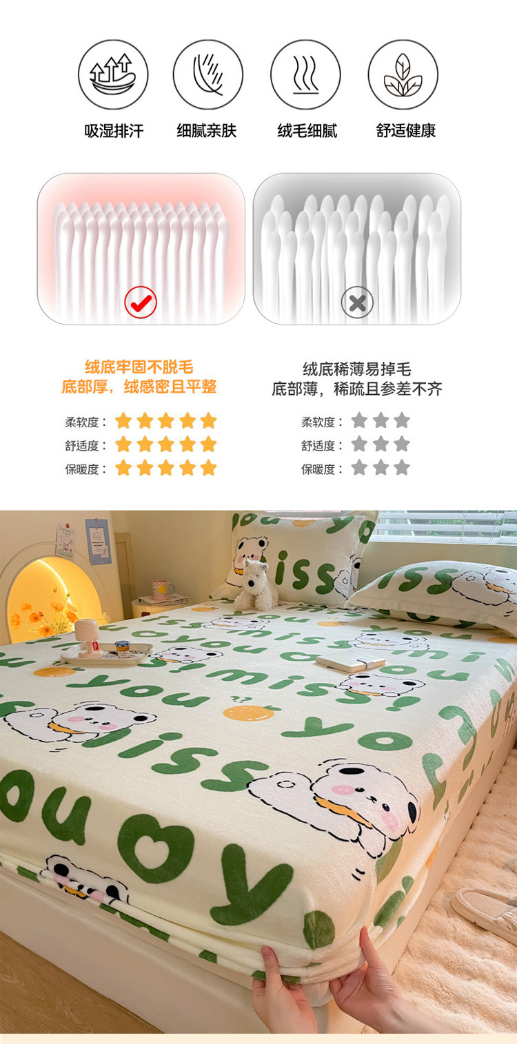 商品名称:柒月家居 2023新款牛奶绒床笠 字母小熊