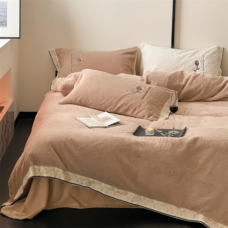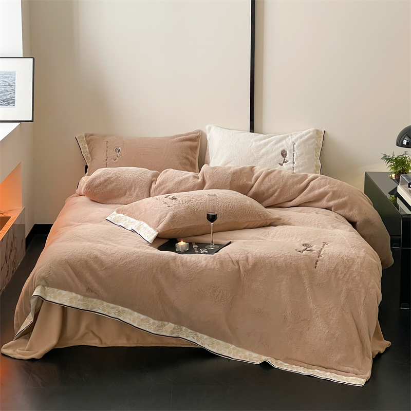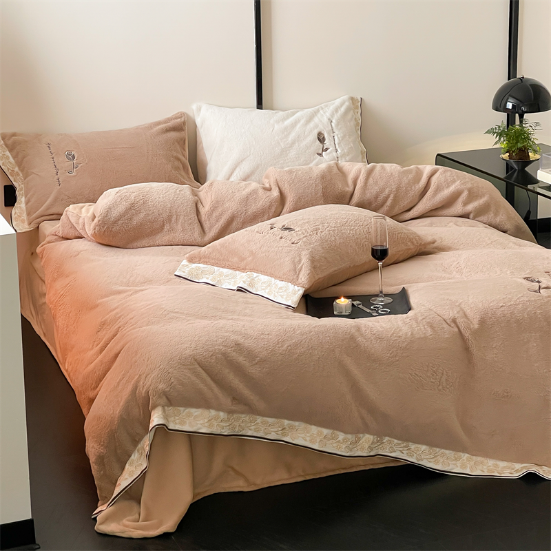 (总)初拾 2025新款230g牛奶绒“高级感“绣花四件套—曼岛邂逅,曼岛邂逅-奶油粉,曼岛邂逅-气质灰,曼岛邂逅-香槟