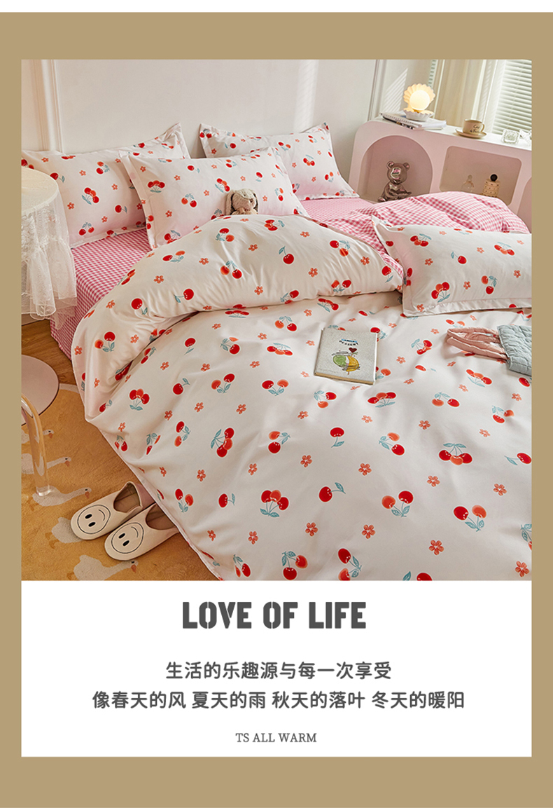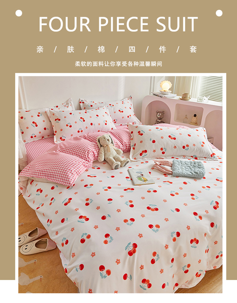 卡斯诺 2023新款芦荟棉四件套花型2 甜蜜樱桃