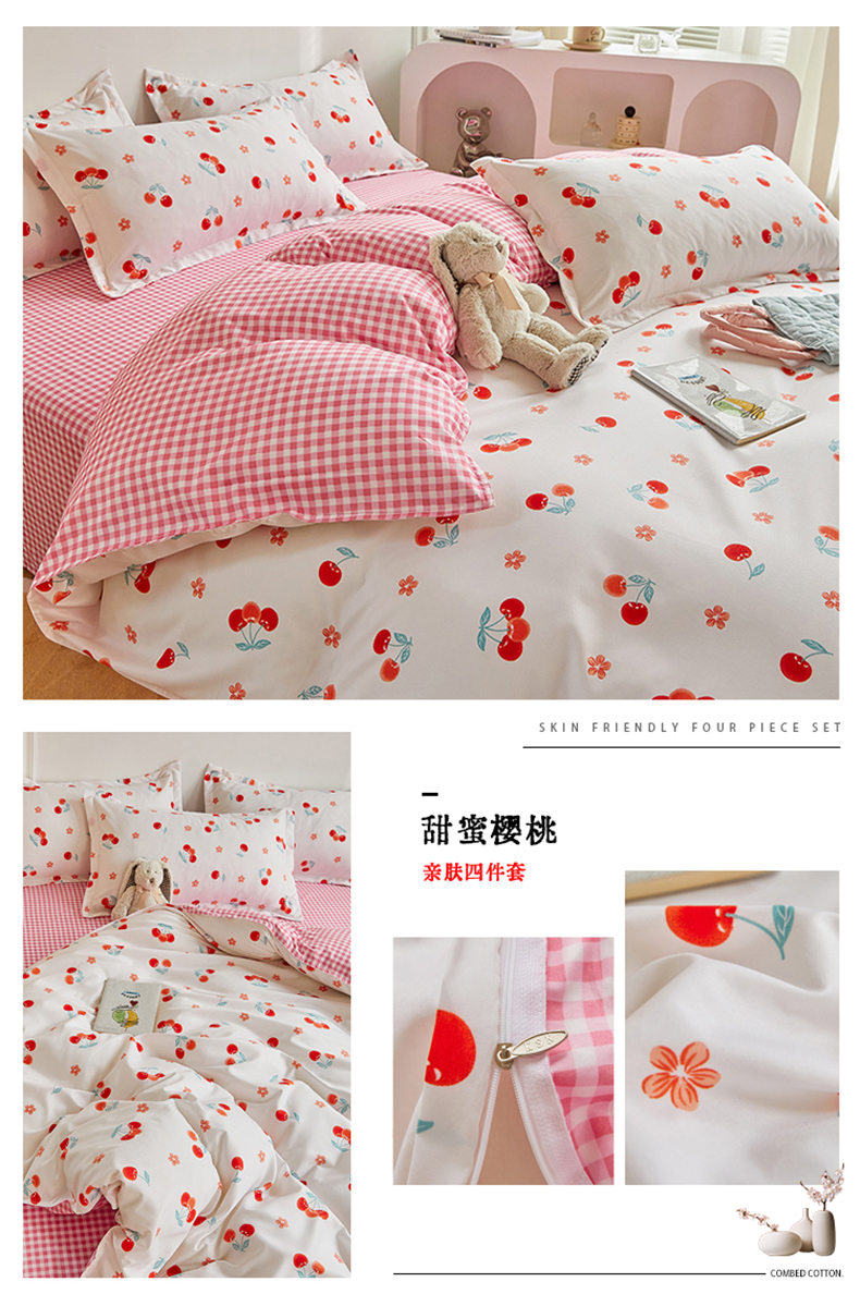 商品名称:卡斯诺 2023新款芦荟棉四件套花型2 甜蜜樱桃