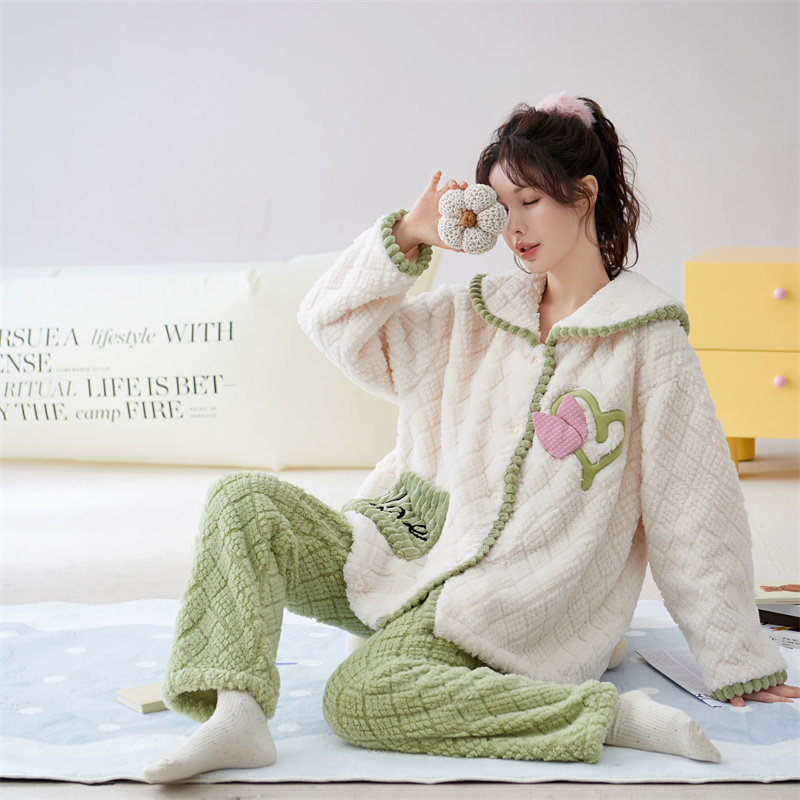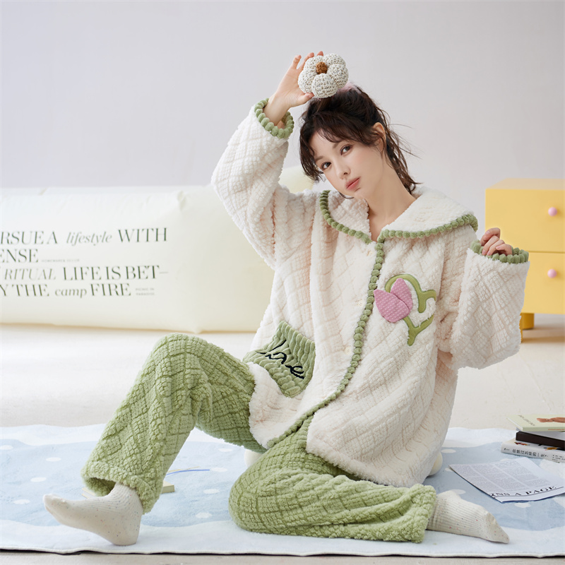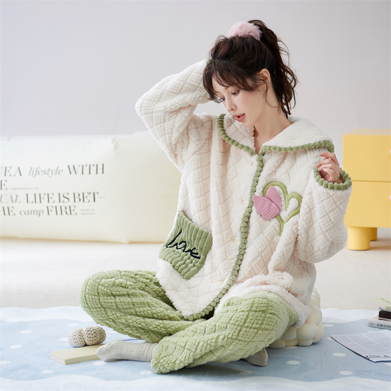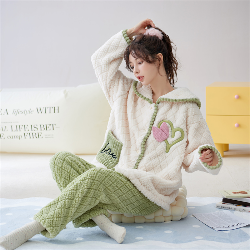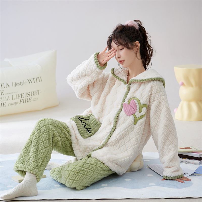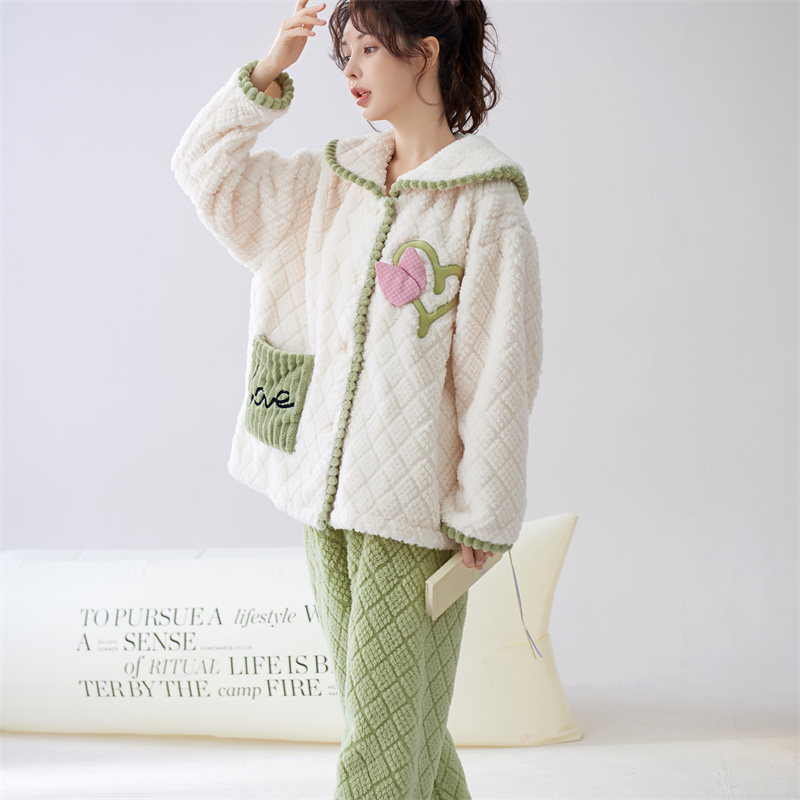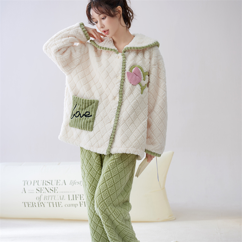 (总)洛兰沙家居馆 2024新款清新款睡衣女秋冬三层夹棉珊瑚绒加厚保暖两件套女士可外穿加绒家居服,99078,99077,99064,99065,99076,99063,99062
