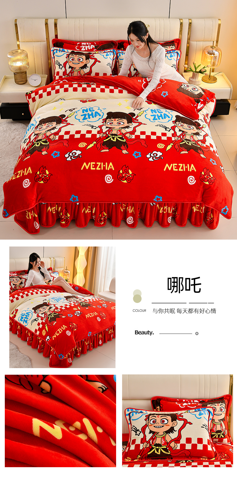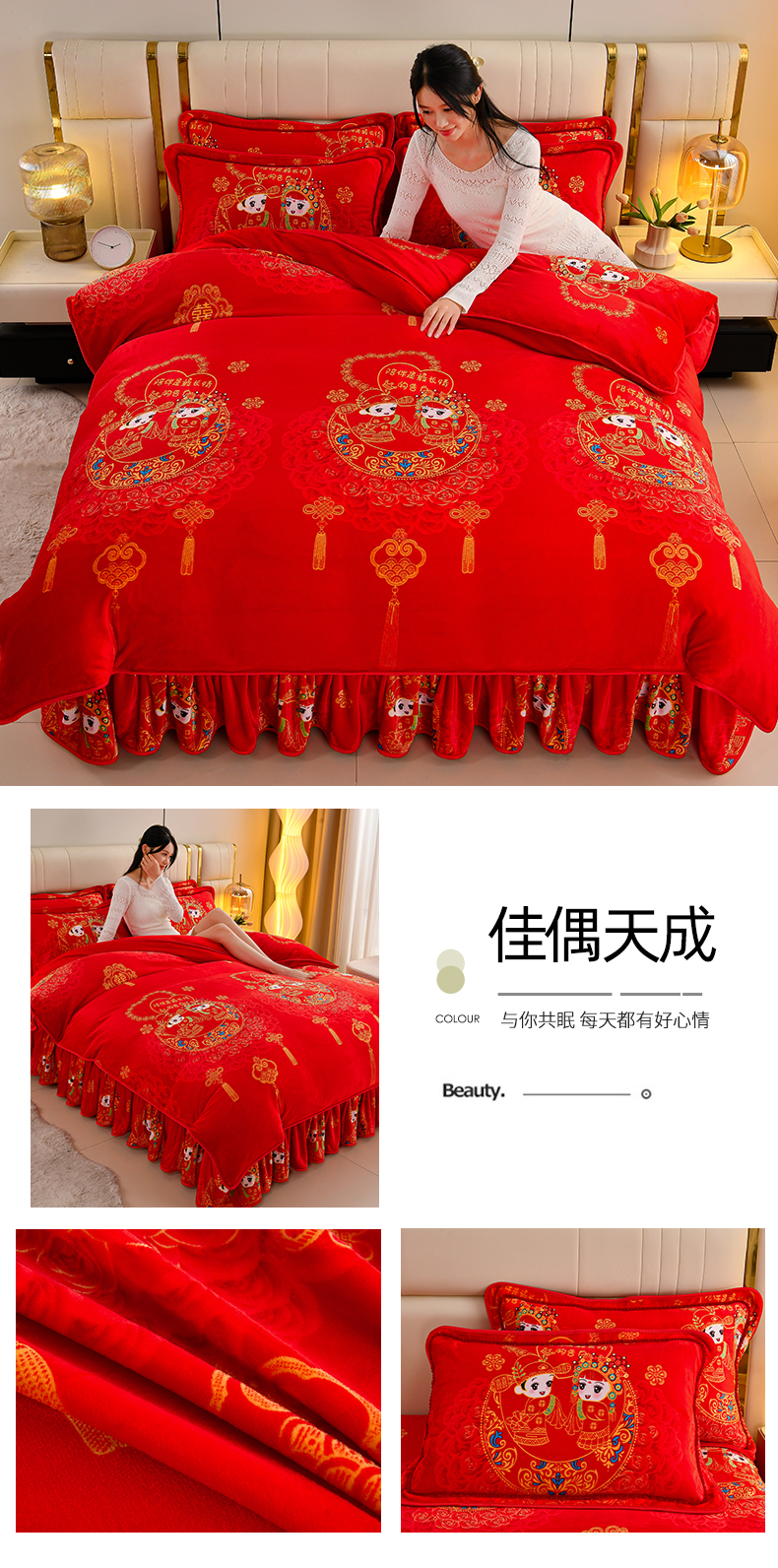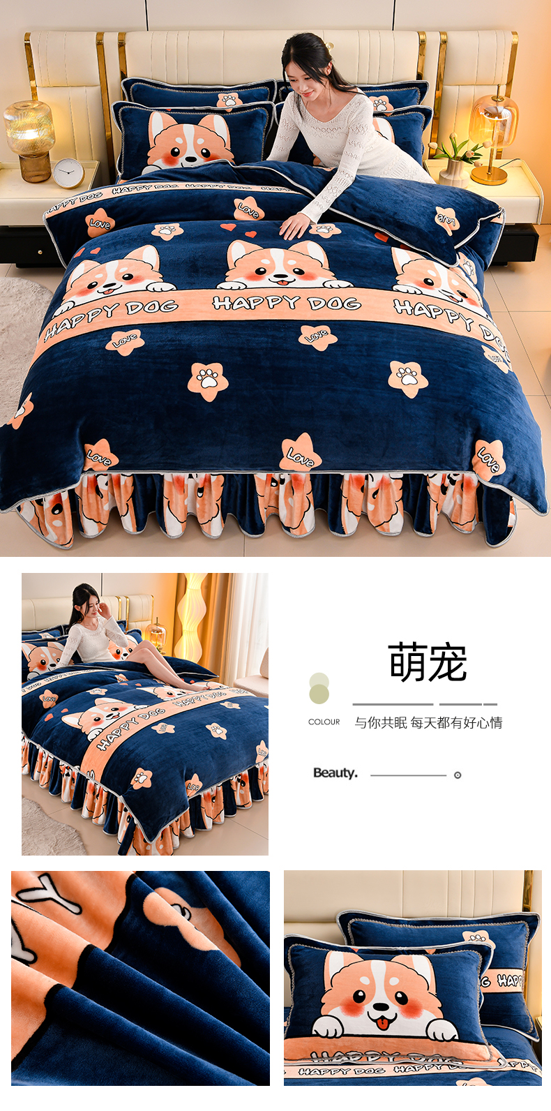 商品名称:(总)绒品荟家纺 2025新款8.5斤加厚牛奶绒金貂绒法莱绒四件套三件套冬季法兰绒床裙款高克重