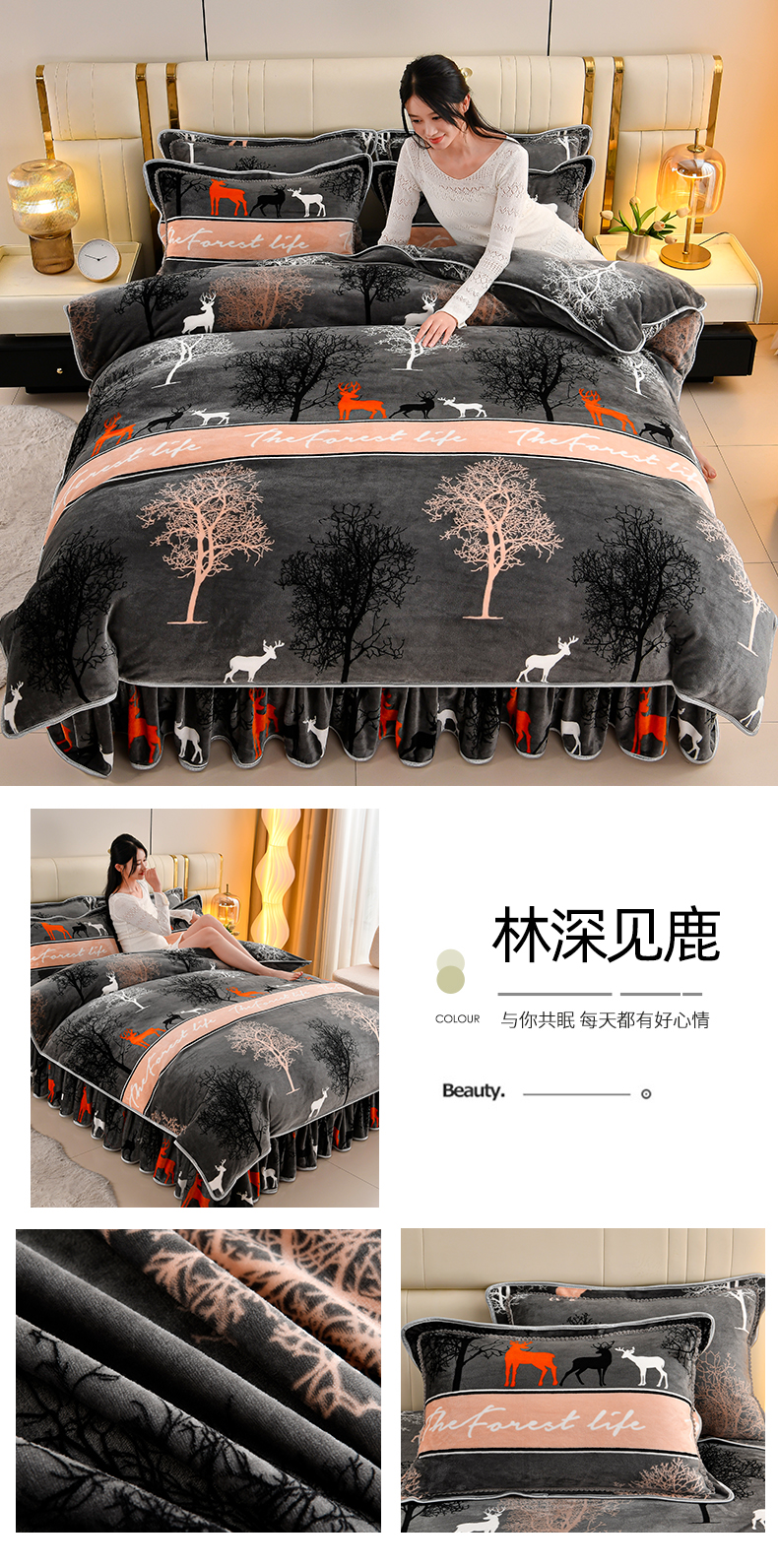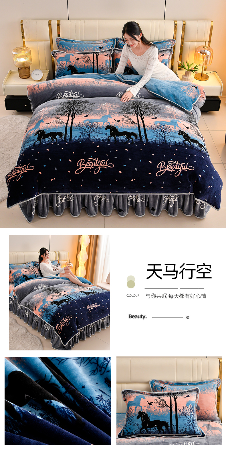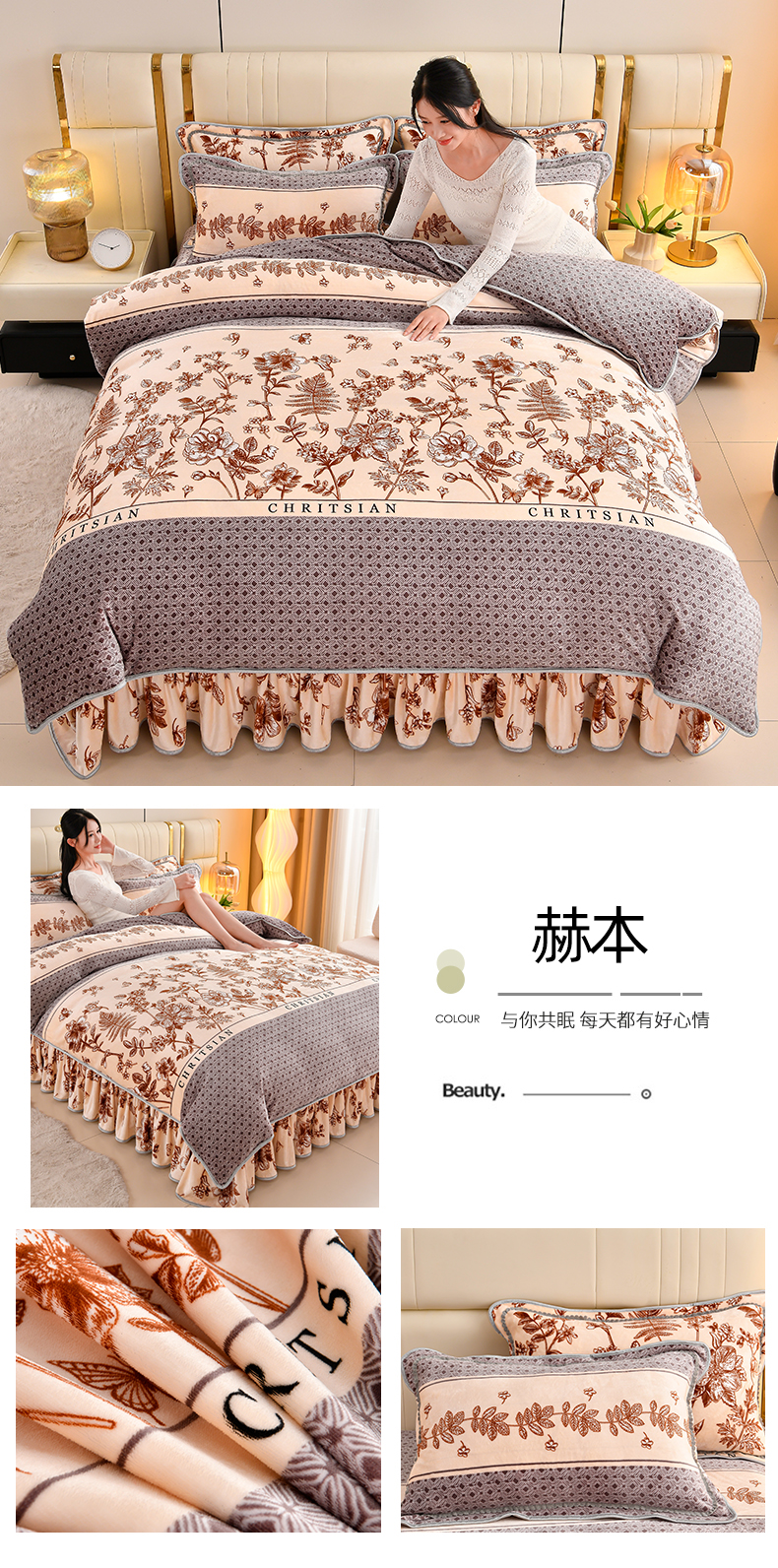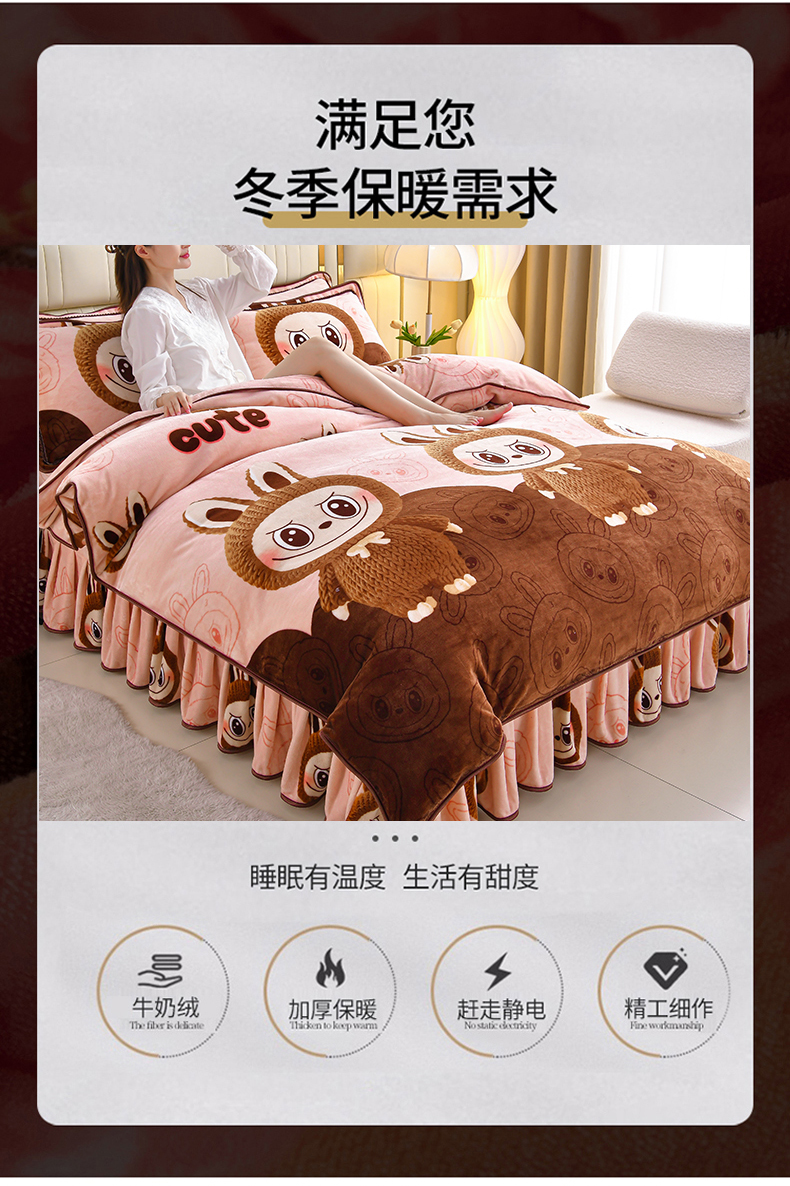 (总)绒品荟家纺 2025新款8.5斤加厚牛奶绒金貂绒法莱绒四件套三件套冬季法兰绒床裙款高克重