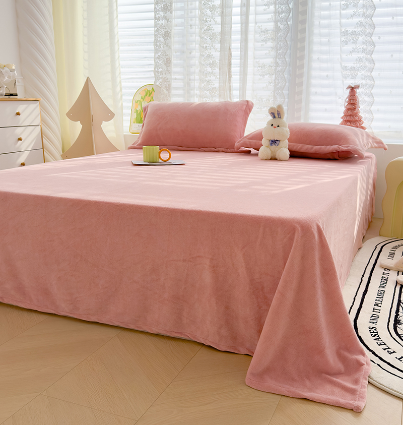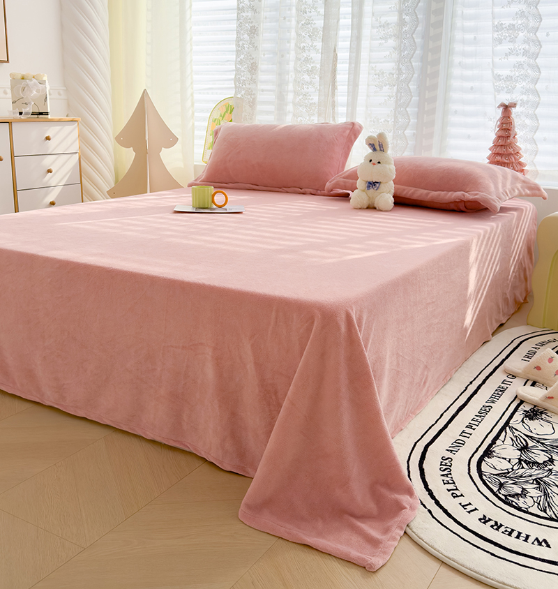 蓝冰家纺 2024新款牛奶绒床单 粉色