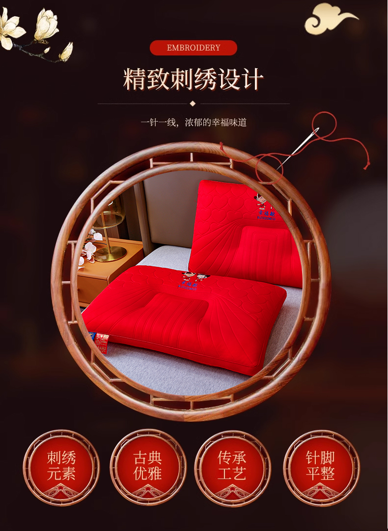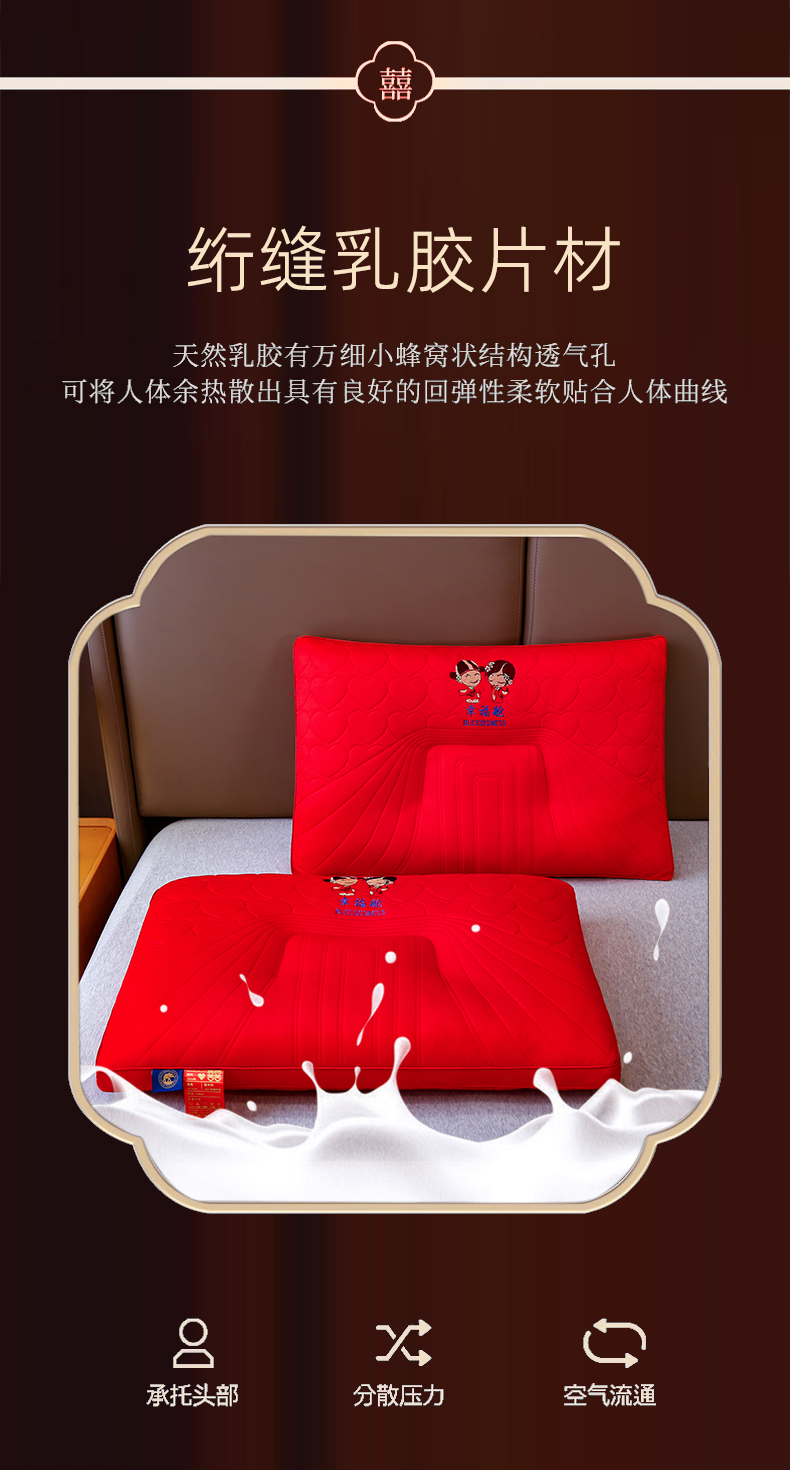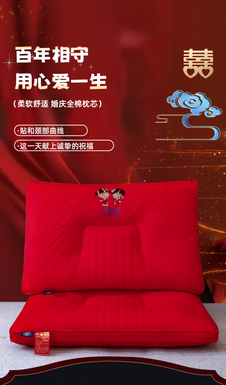 当前位置: 91家纺网 > 商品网购 > 枕头/枕芯/保健枕/颈椎枕 > 普通枕芯 > 织布人 2024新款枕芯喜庆大红婚庆绗缝乳胶护颈枕芯陪嫁枕头 幸福-相伴