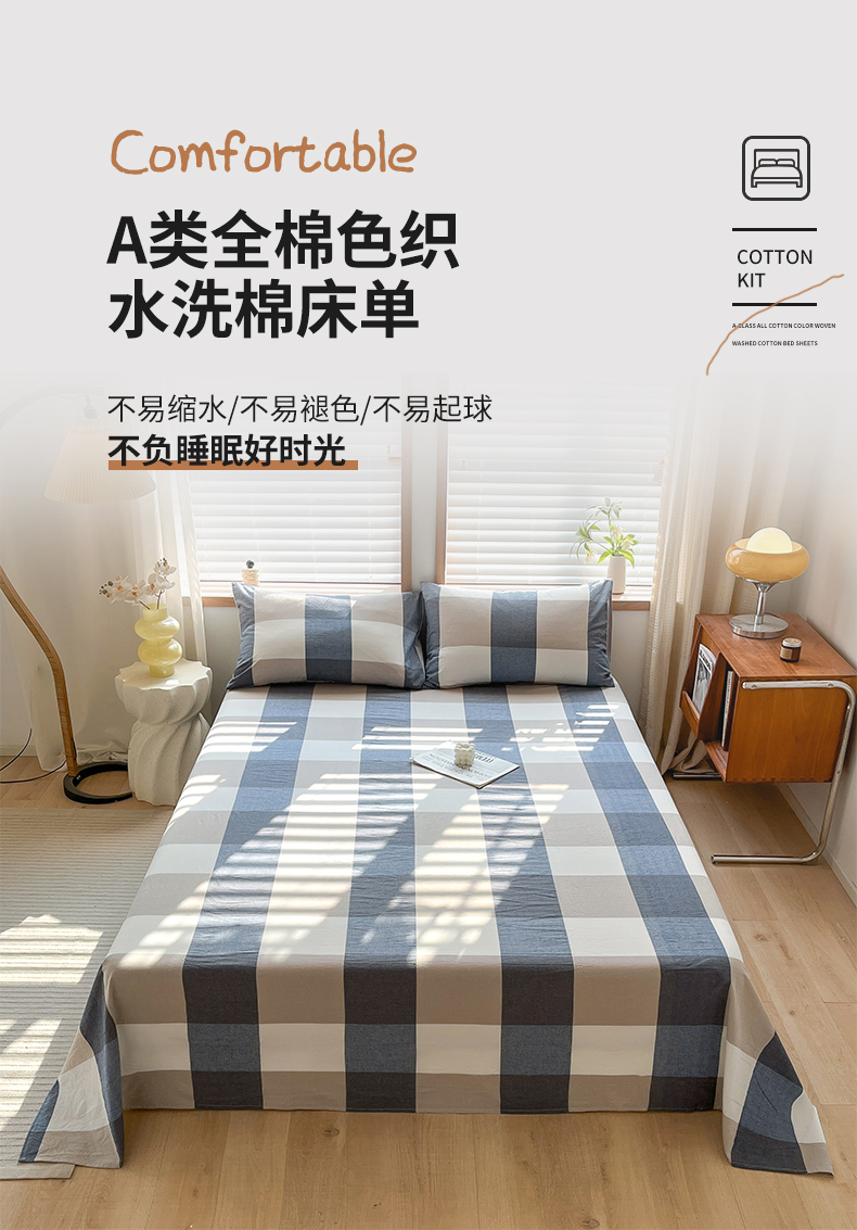(总)启程家纺 2026新款全棉A类水洗棉多规格四件套单品-单床单,蓝灰中格,斯诺克,浅蓝小格,粉小格,莫妮蓝,诺卡,云华绿大格,大冰激凌粉,粉大格,暗灰中格,绿大格,粉小方格,绿小格,牛油果灰大格,紫粉小格,灰小方格,黄小格,黄粉小格,蓝黄小格,蓝大格,绿灰大格,爱格紫,灰小格,格林粉,深灰条,莫妮绿,莫妮玉,米小格