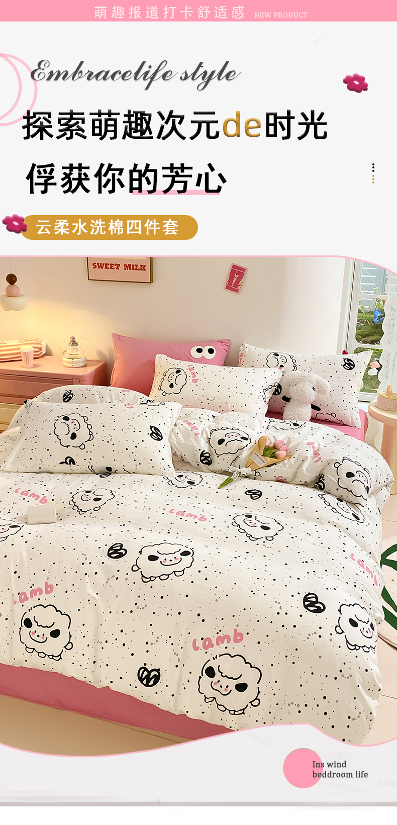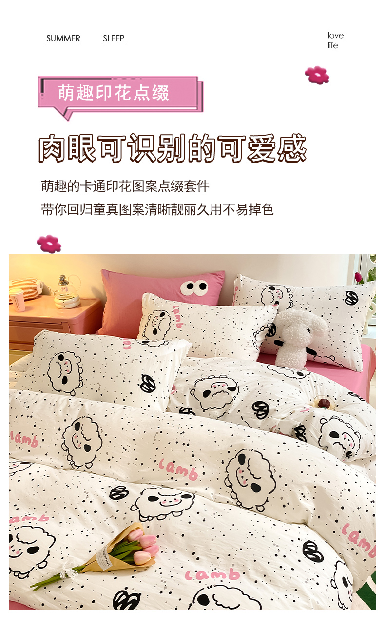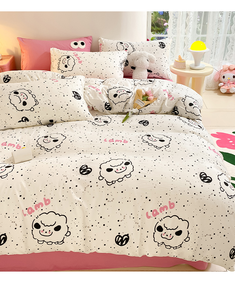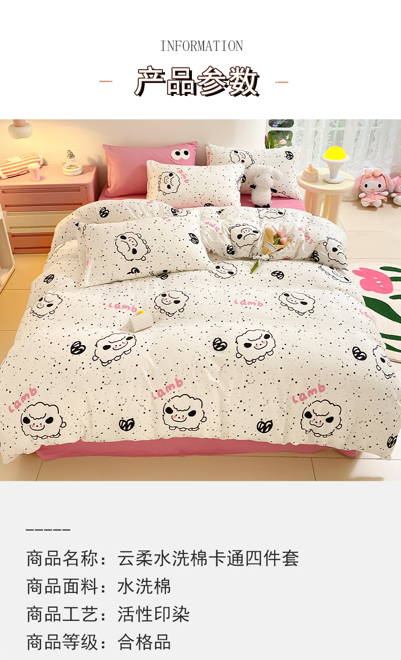 当前位置: 91家纺网 > 商品网购 > 床品套件 > 四件套 > 水洗棉四件套 > 葡萄家 2024新款双层纱云柔水洗棉萌趣卡通系列四件套(提供买家秀联系客服) 小羊咩咩