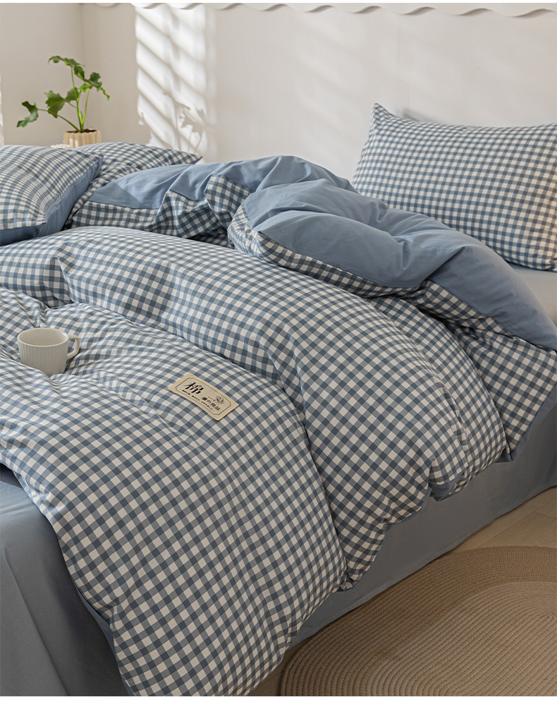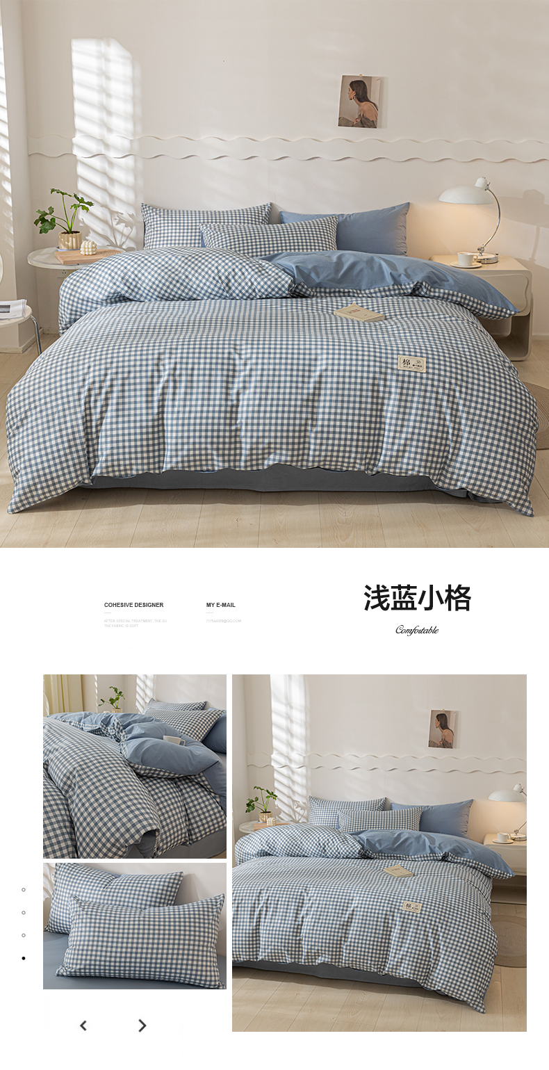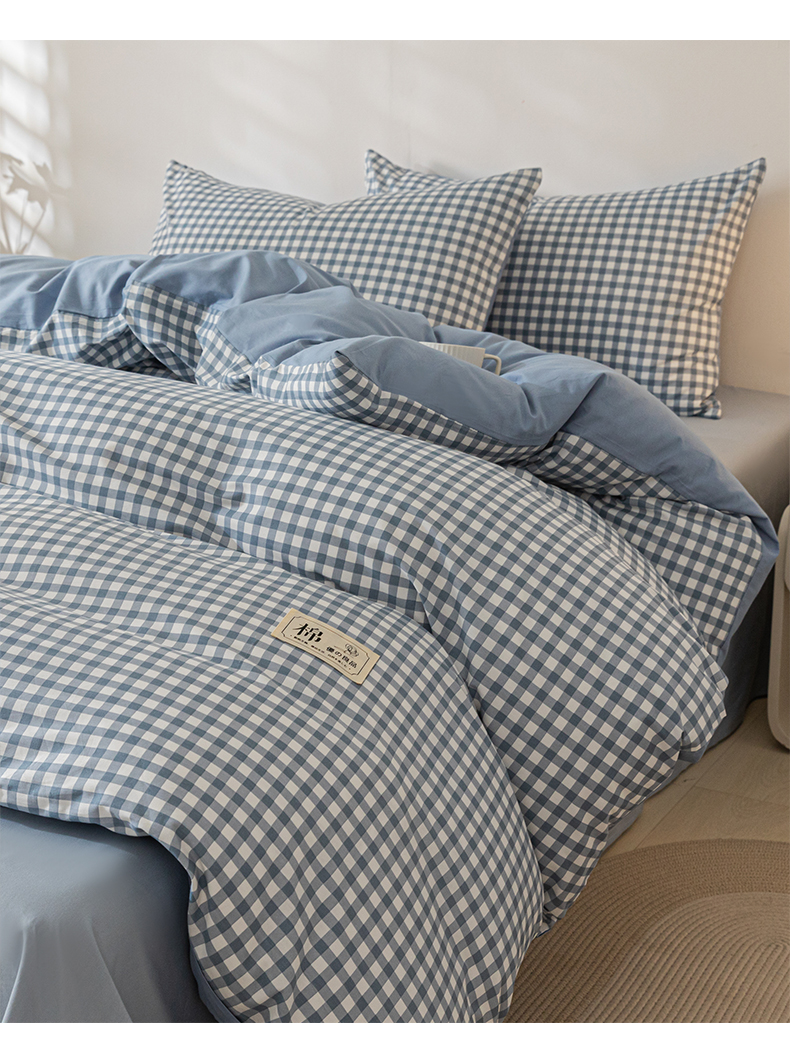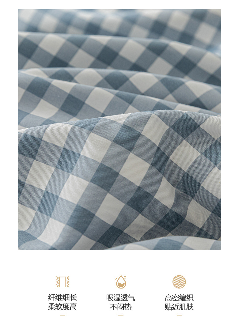 当前位置: 91家纺网 > 商品网购 > 床品套件 > 四件套 > 全棉普通四件套 > 恋人优选 2024新款40支13372纯棉四件套-风格一 浅蓝小格-40S