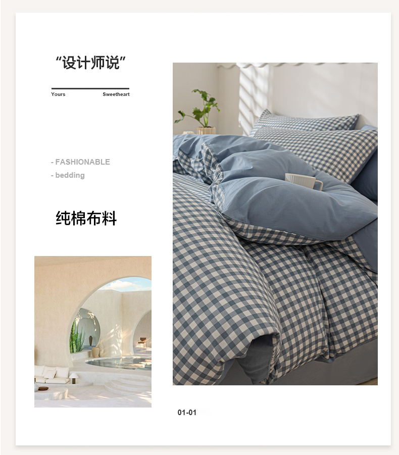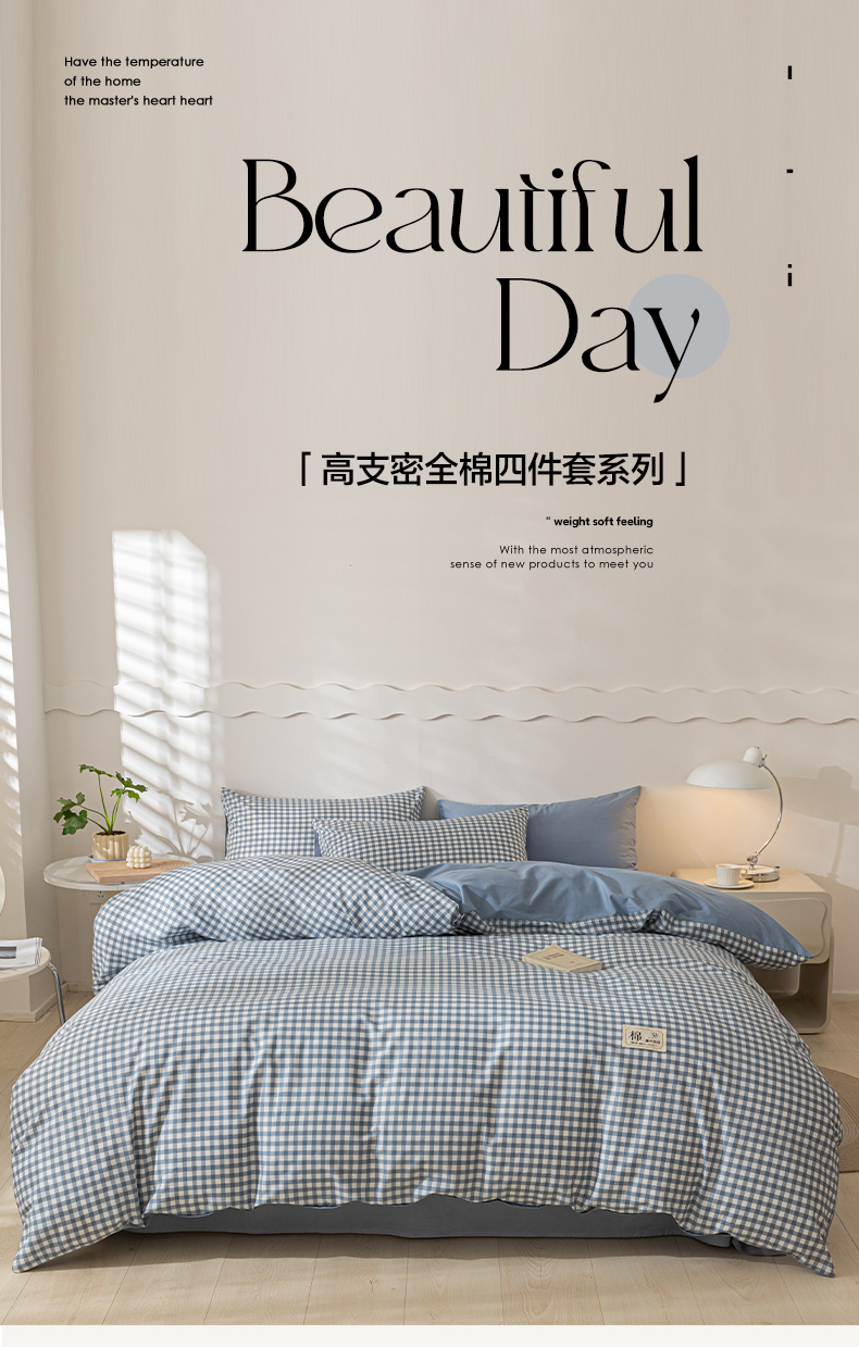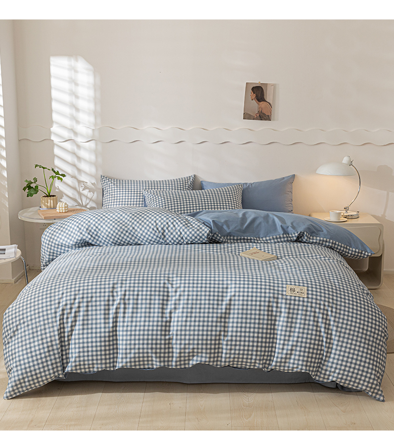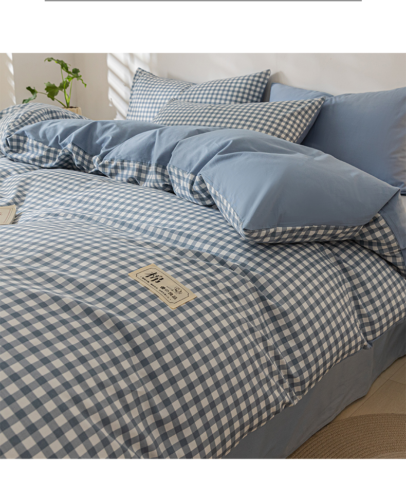 当前位置: 91家纺网 > 商品网购 > 床品套件 > 四件套 > 全棉普通四件套 > 恋人优选 2024新款40支13372纯棉四件套-风格一 浅蓝小格-40S