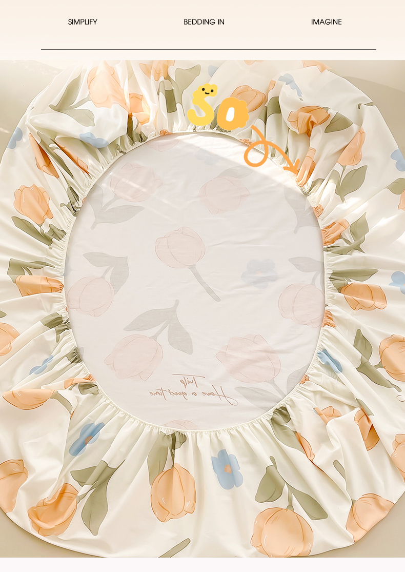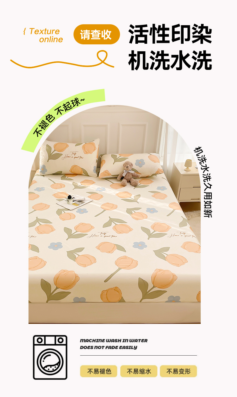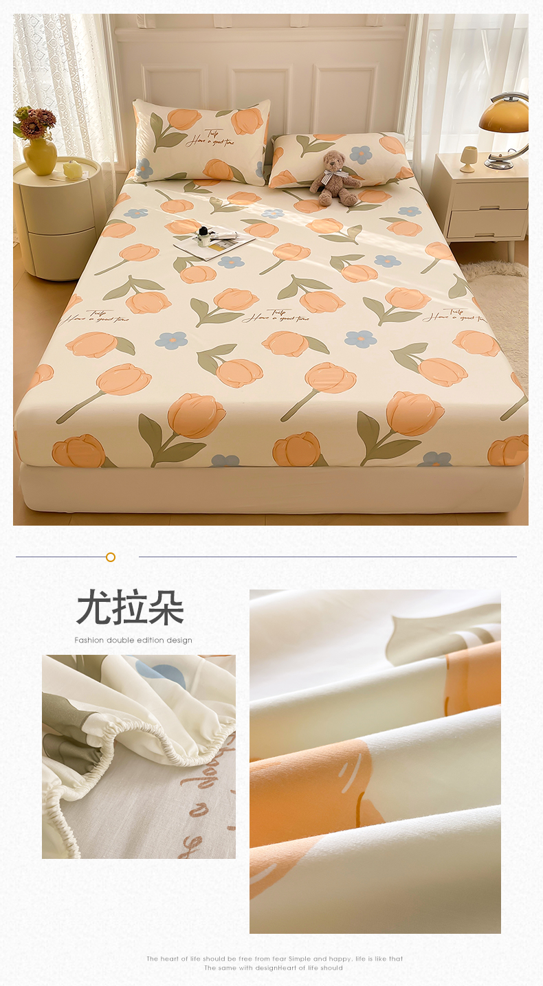 • 91家纺网 家纺一手货源 找家纺 雯豆家纺 2024新款全棉纯棉小清新印花床笠单层床垫保护套 全棉单层床笠-尤拉朵