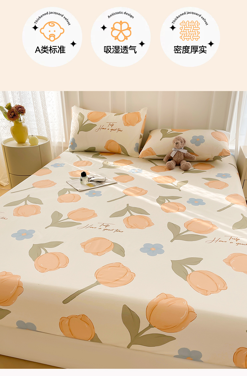 雯豆家纺 2024新款全棉纯棉小清新印花床笠单层床垫保护套 全棉单层床笠-尤拉朵