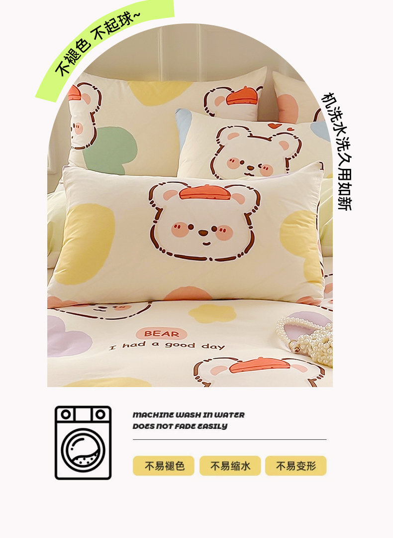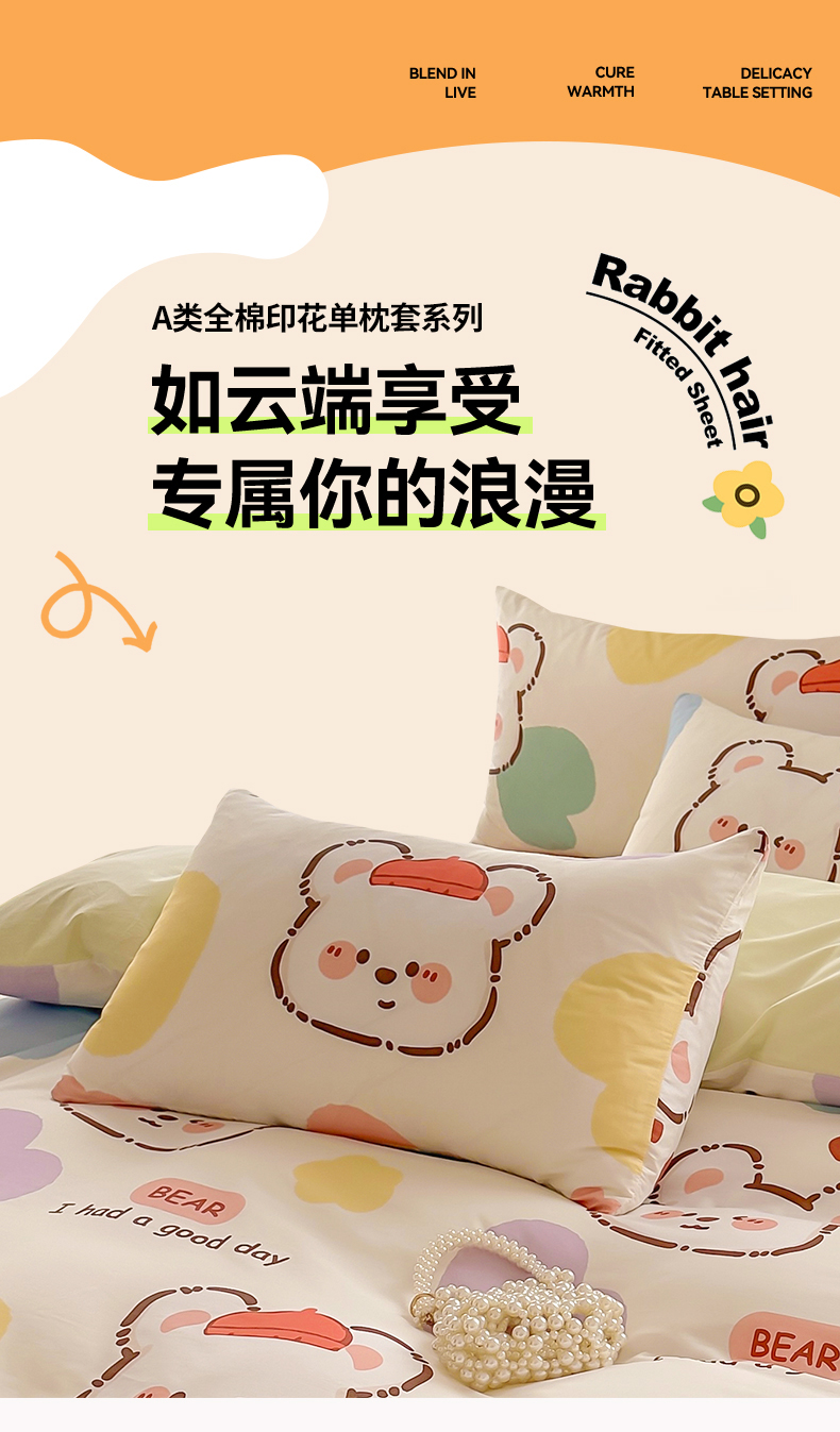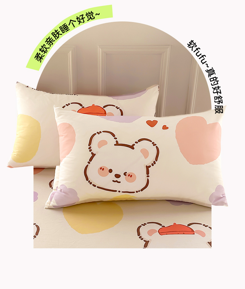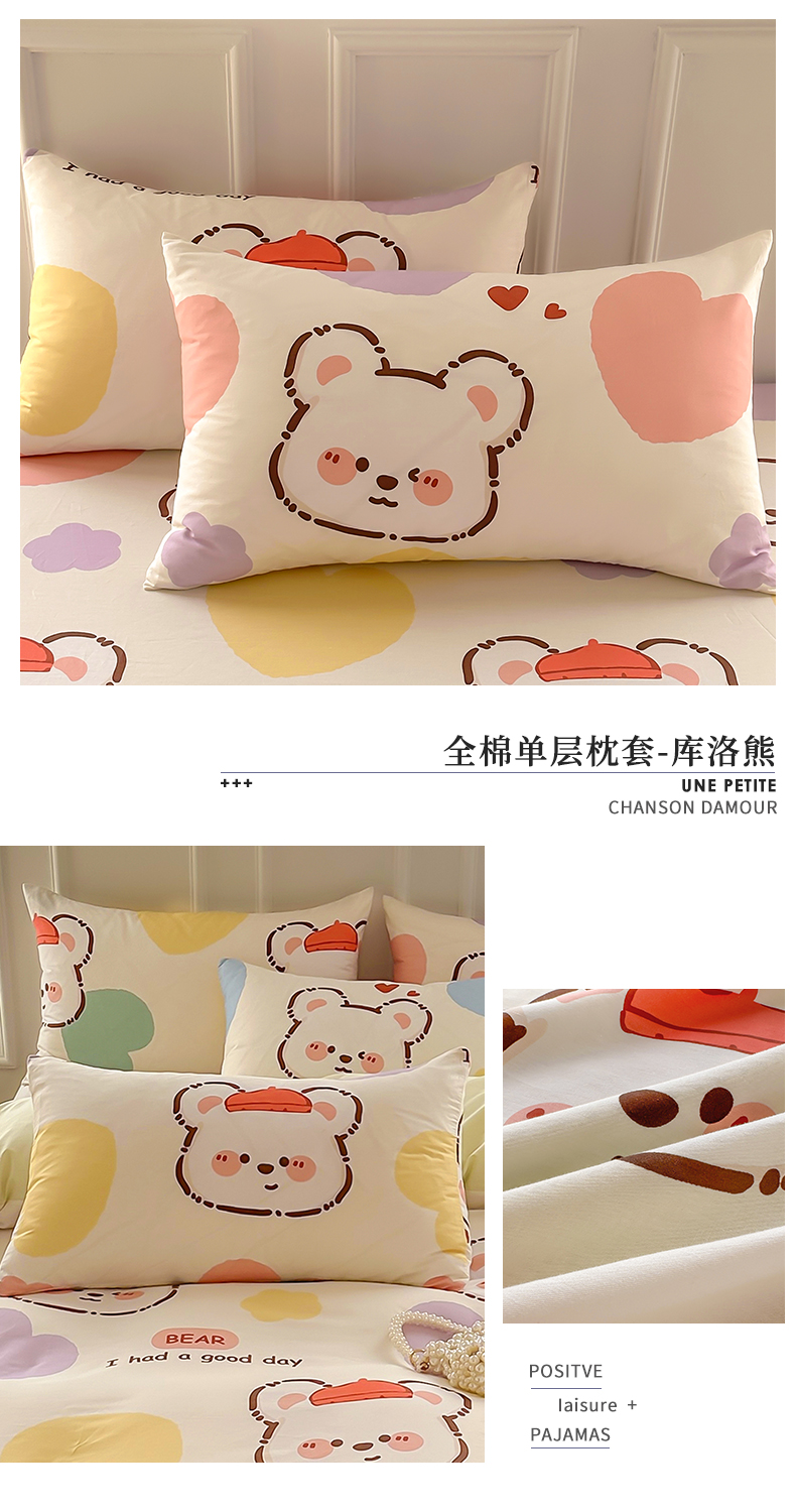 商品名称:雯豆 2024新款全棉纯棉枕套一对装 全棉单层枕套-库洛熊