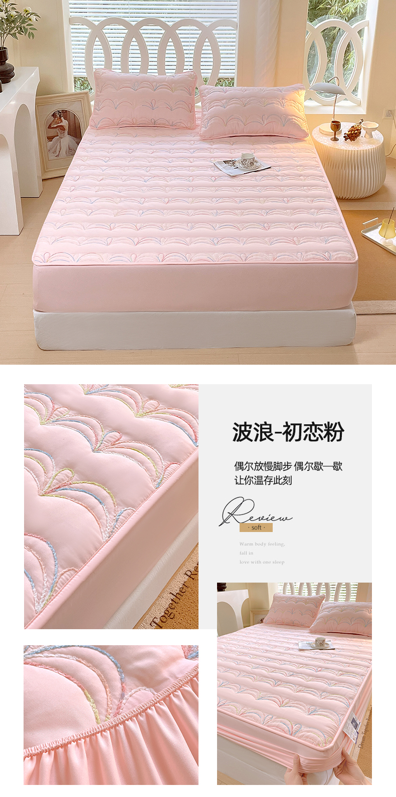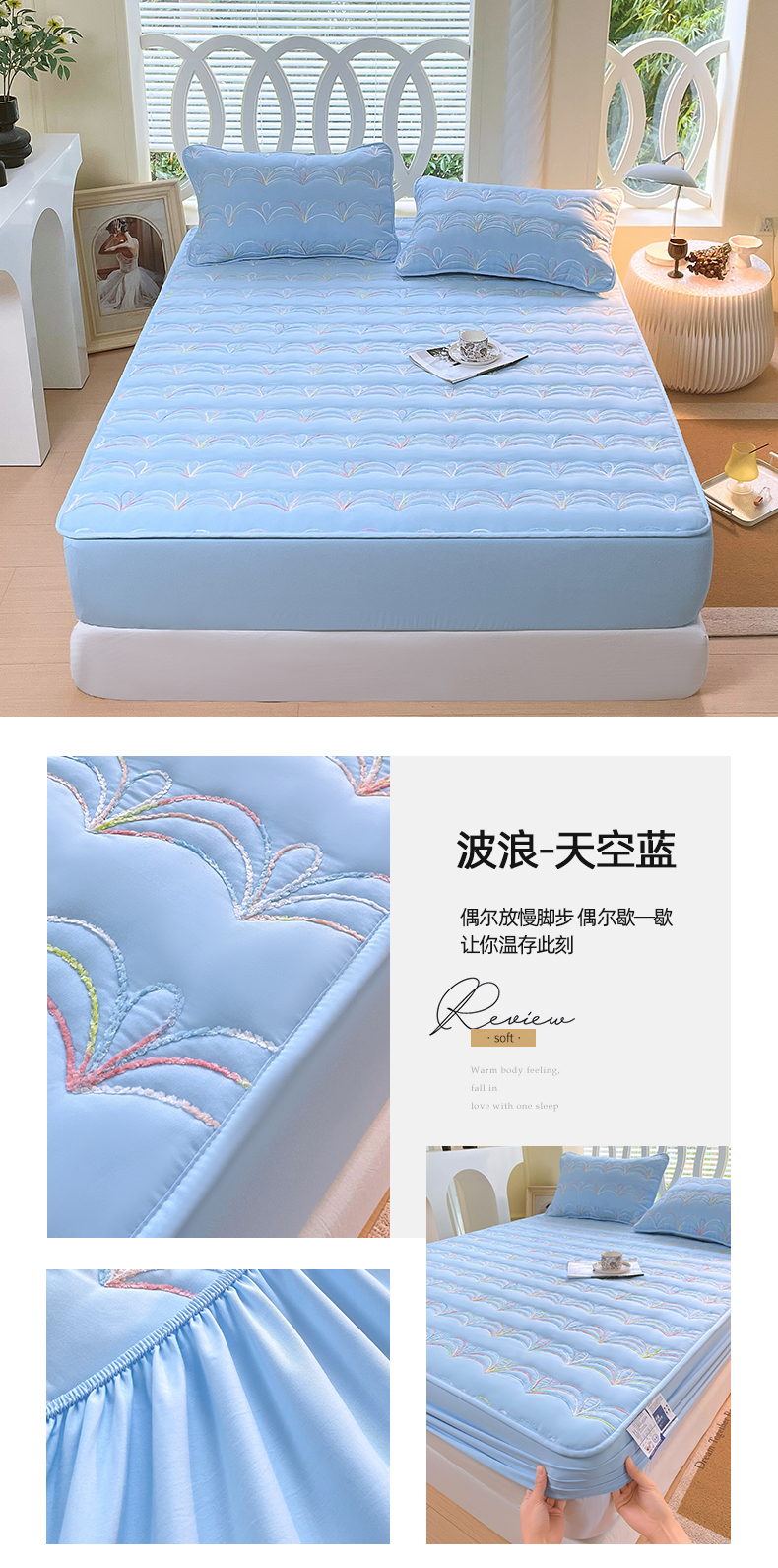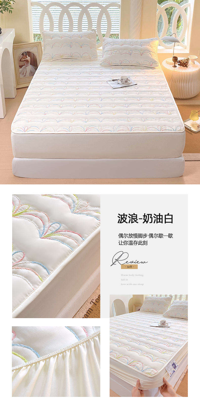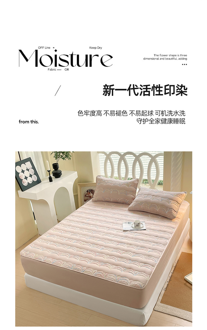 商品名称:(总)尊康家纺(原磊科) 2024新款奶昔棉抗菌夹棉床笠-波浪