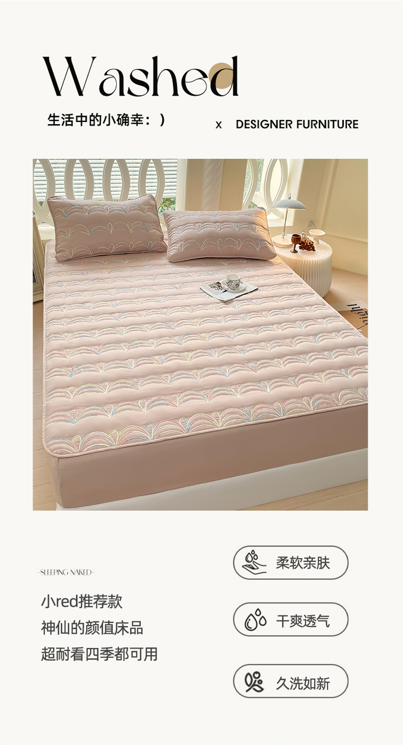 尊康家纺(原磊科) 2024新款亲肤奶昔棉夹棉床裙-风雅 风雅-黛粉,风雅-黛粉