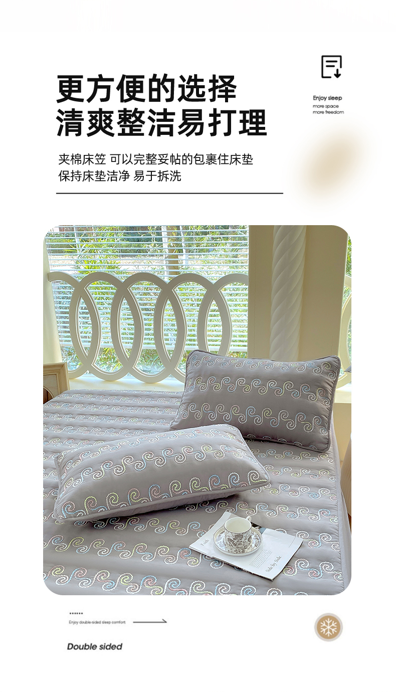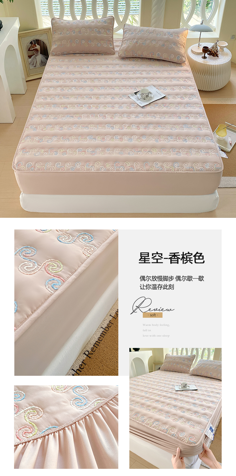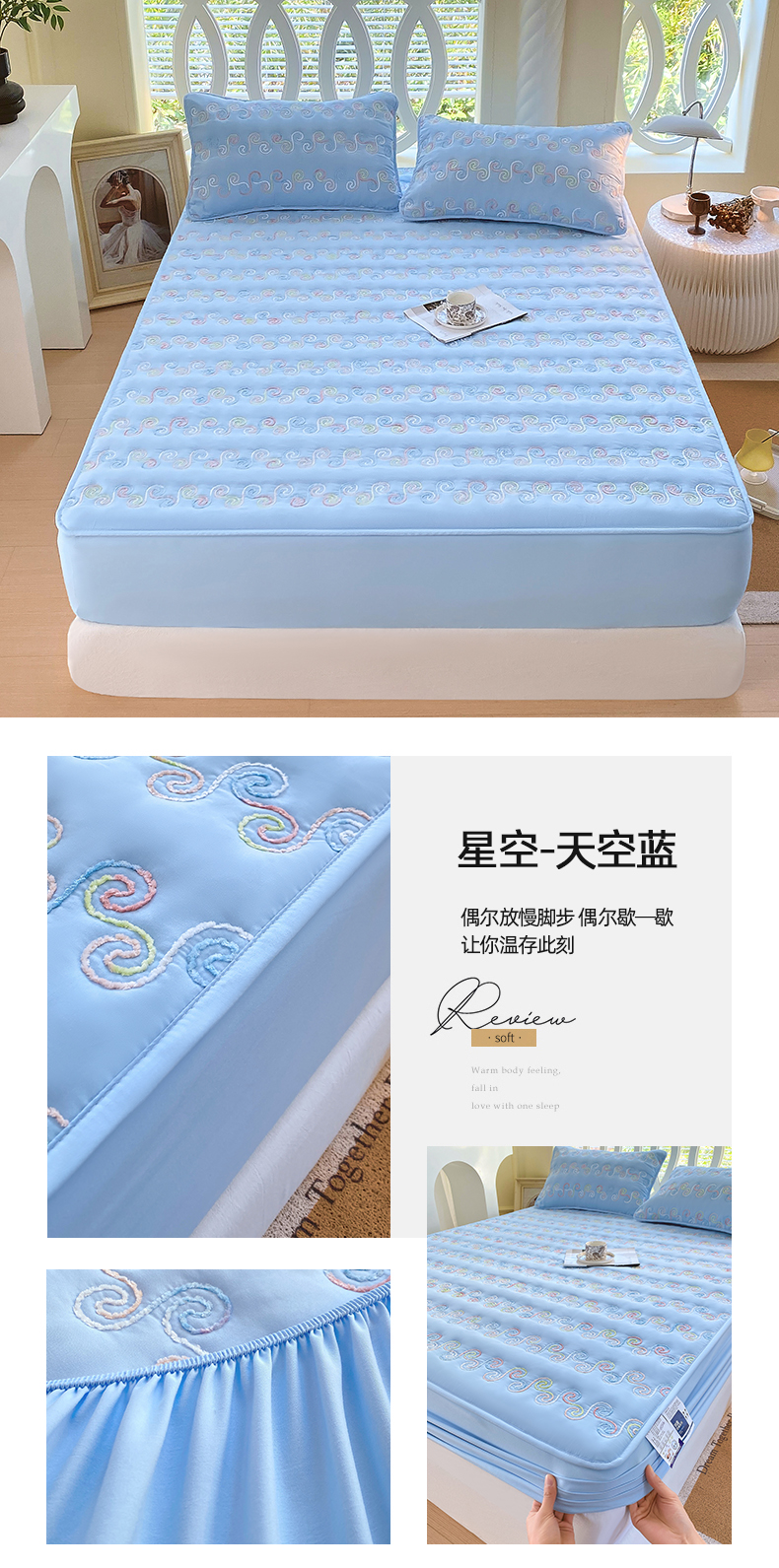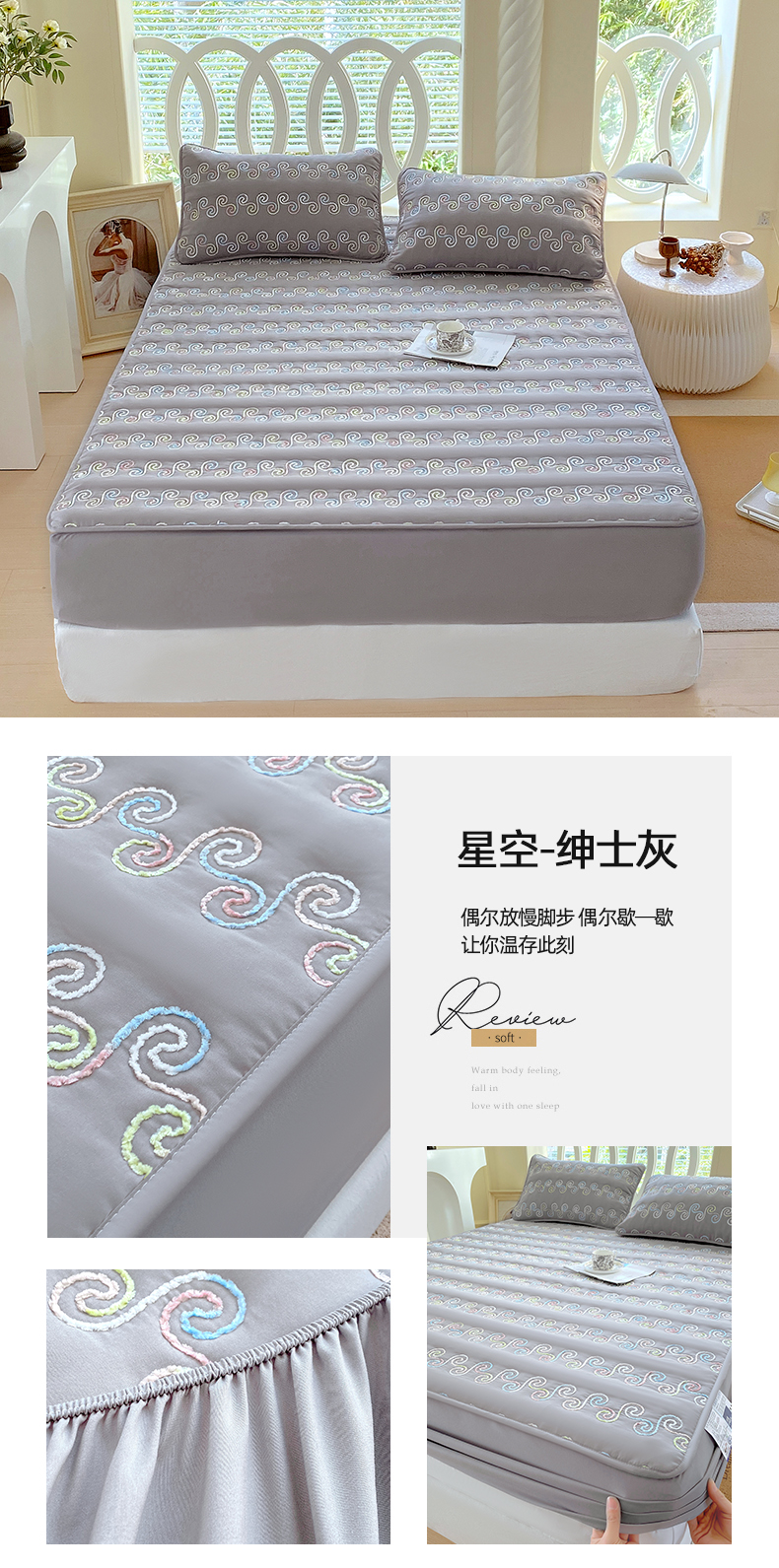 (总)尊康家纺(原磊科) 2024新款亲肤奶昔棉夹棉床笠-星空