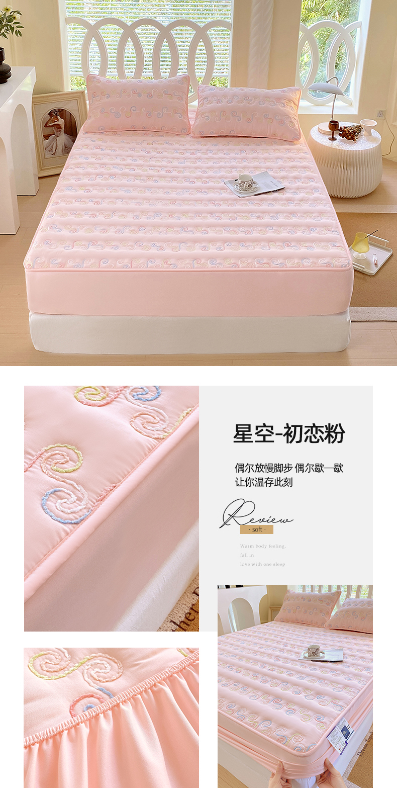 尊康家纺(原磊科) 2024新款亲肤奶昔棉夹棉床裙-风雅 风雅-黛粉,风雅-黛粉