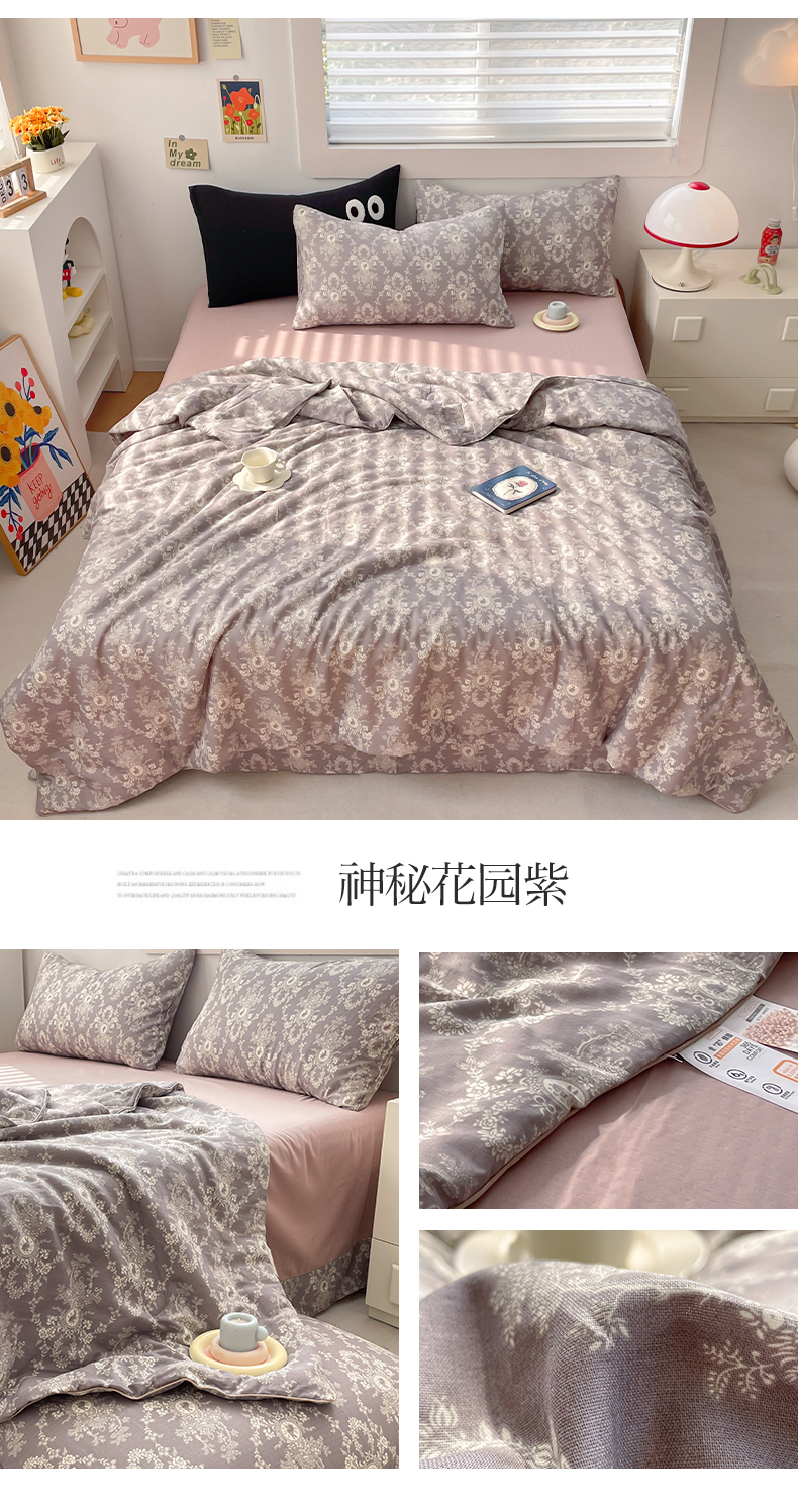 商品名称:迷尚 2024新款全棉双层纱大豆夏被 神秘花园紫