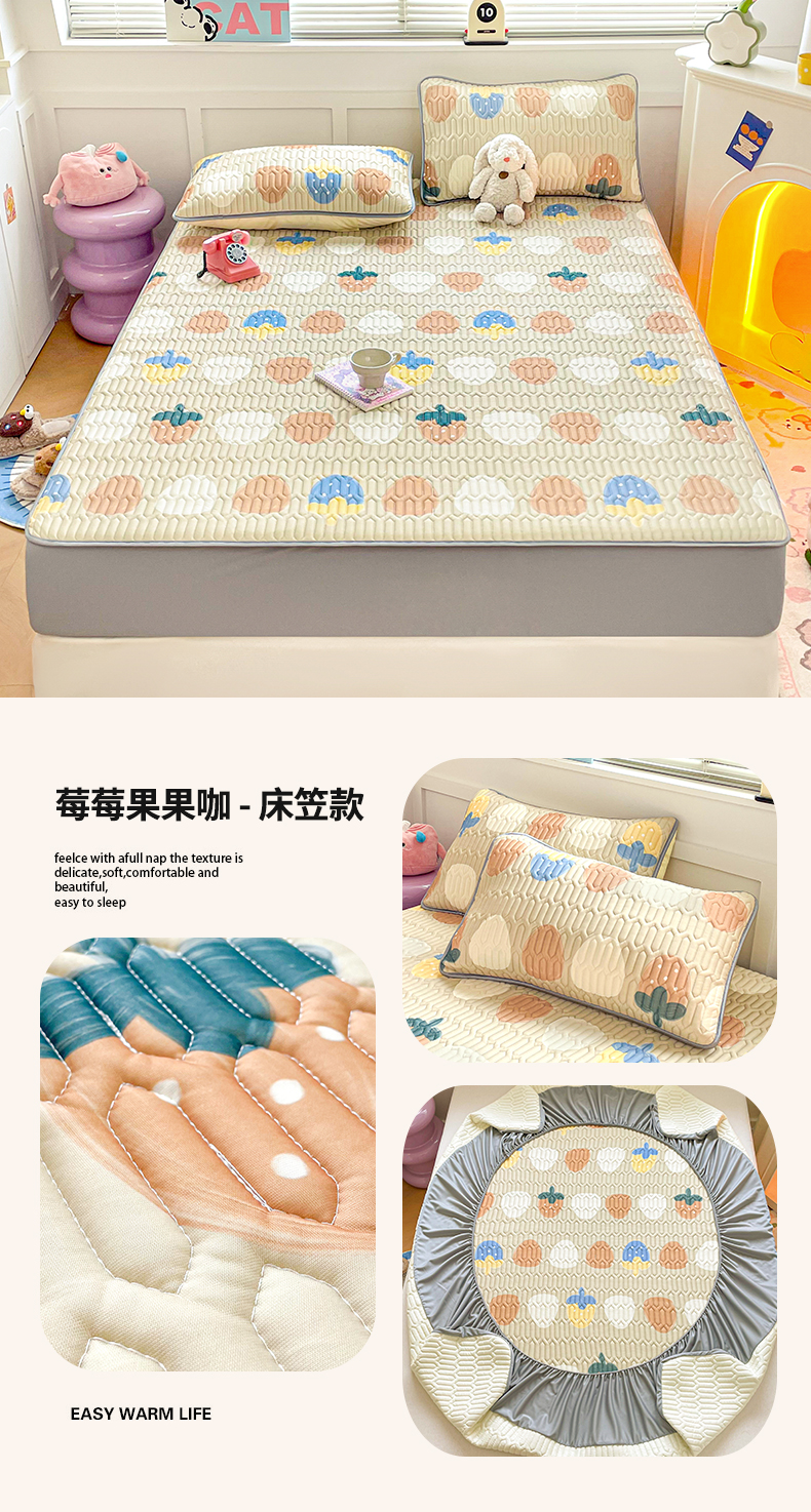 商品名称:米帛家纺 2024新款A类凉感丝卡通乳胶凉席-床笠款 莓莓果果咖