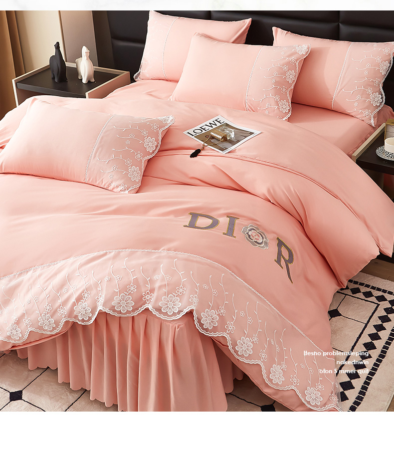 莉莉安 2025新款亲肤磨毛蕾丝刺绣四件套-蒂欧系列 蒂欧-太妃玉