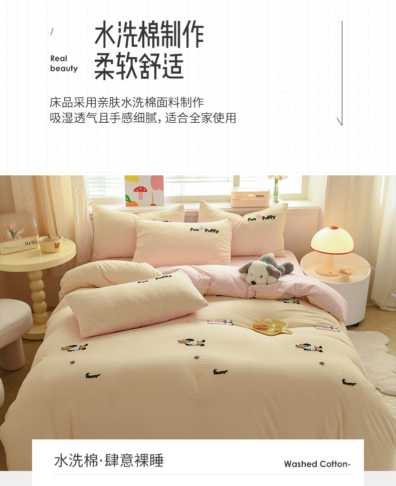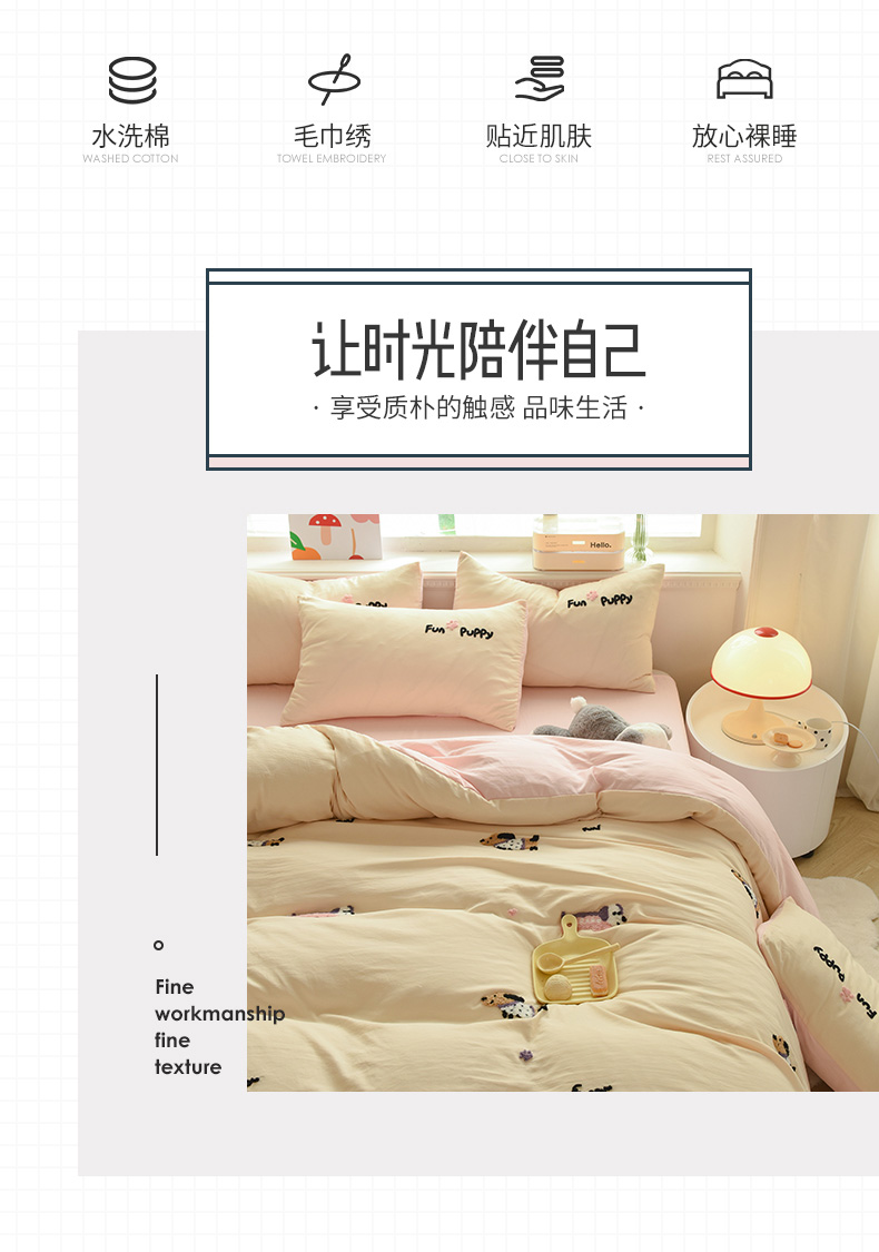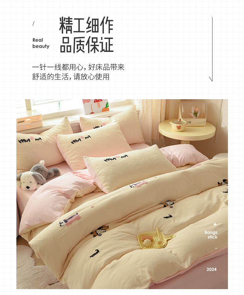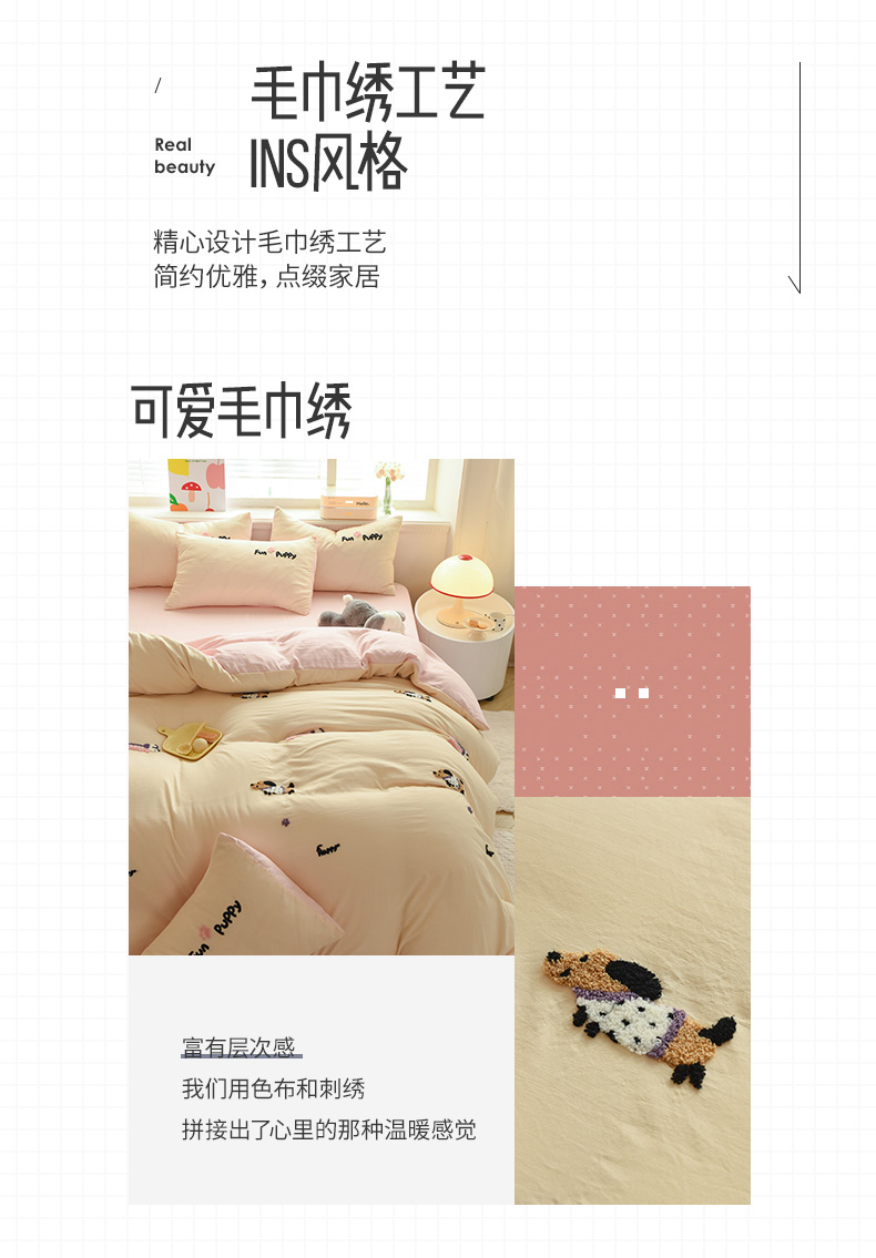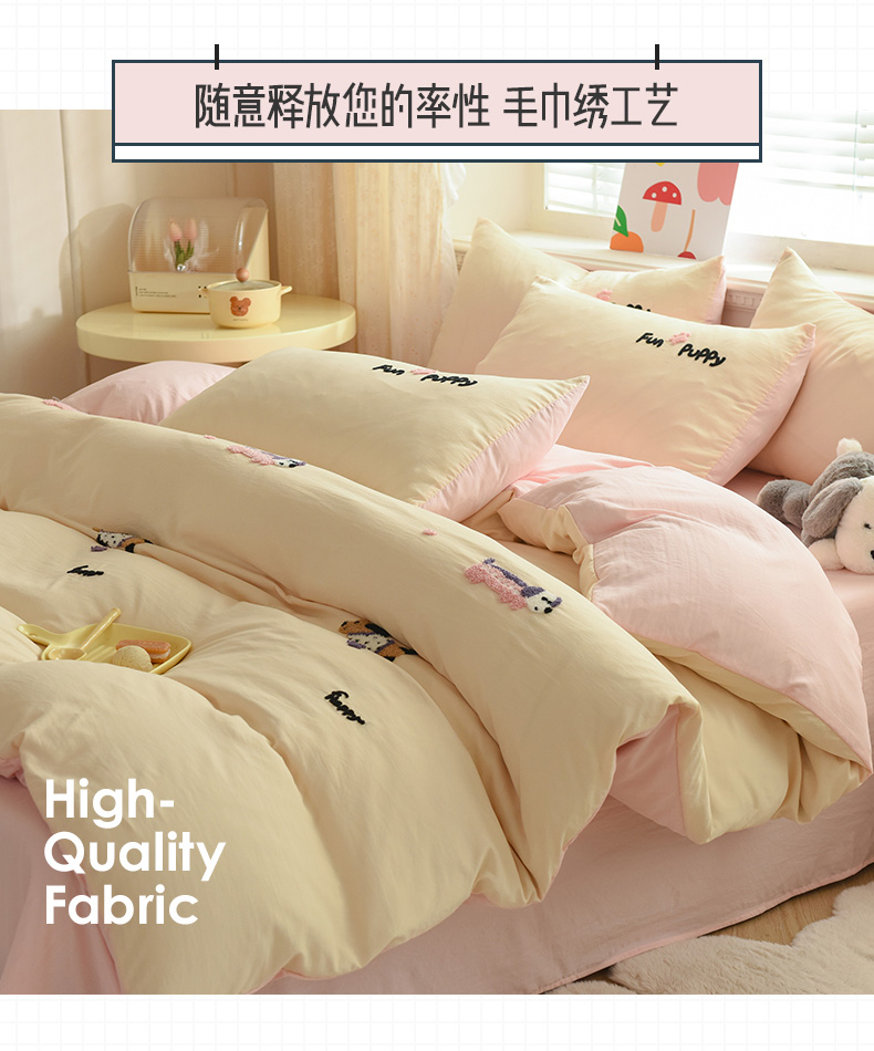 当前位置: 91家纺网 > 商品网购 > 床品套件 > 四件套 > 水洗棉四件套 > 莉莉安 2025新款水洗棉毛巾绣四件套-卡哇伊系列 卡哇伊-香肠狗粉
