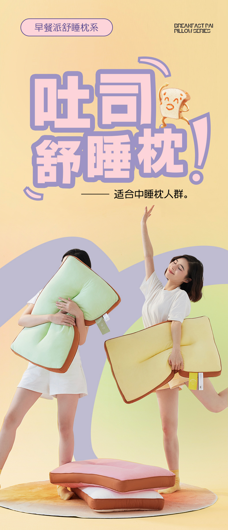 商品名称:(总)安莱生活 2024新款5A抗菌早餐派创意系列枕芯-中枕-吐司枕