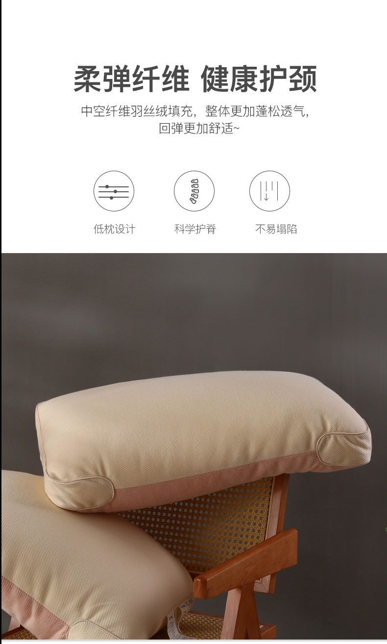 2022新品全棉防羽布低枕羽丝绒枕头水洗定型护颈单人枕芯,全棉防羽布简约定型低枕