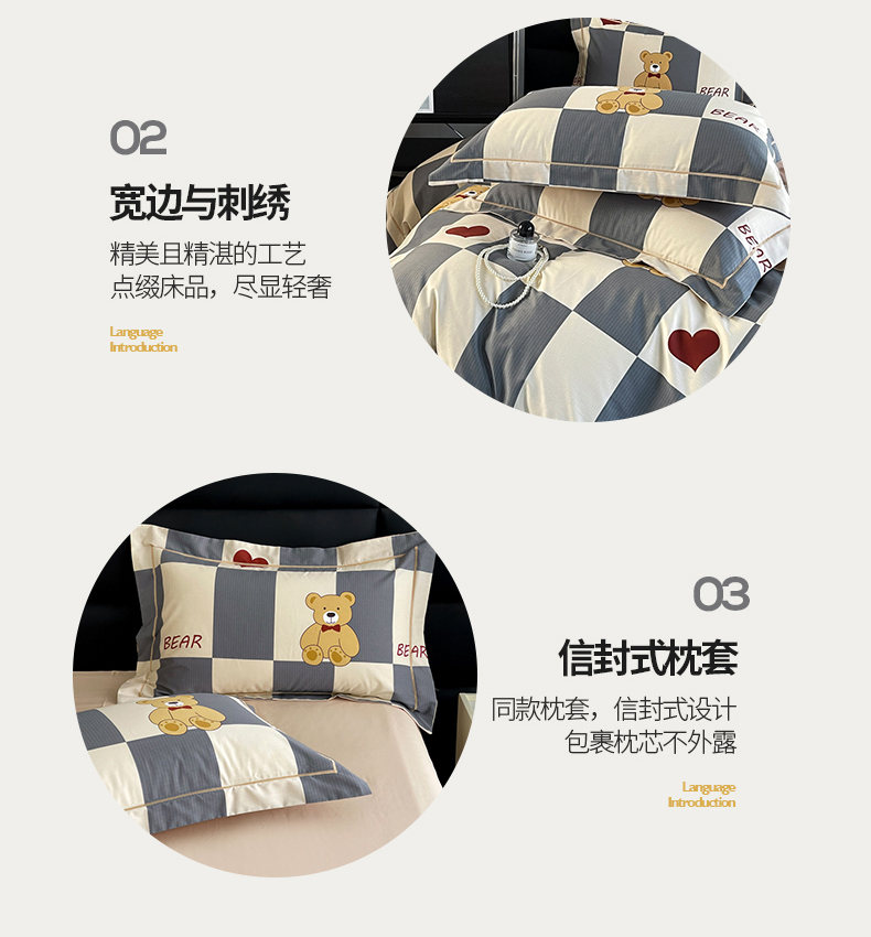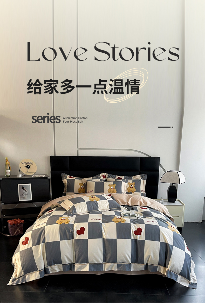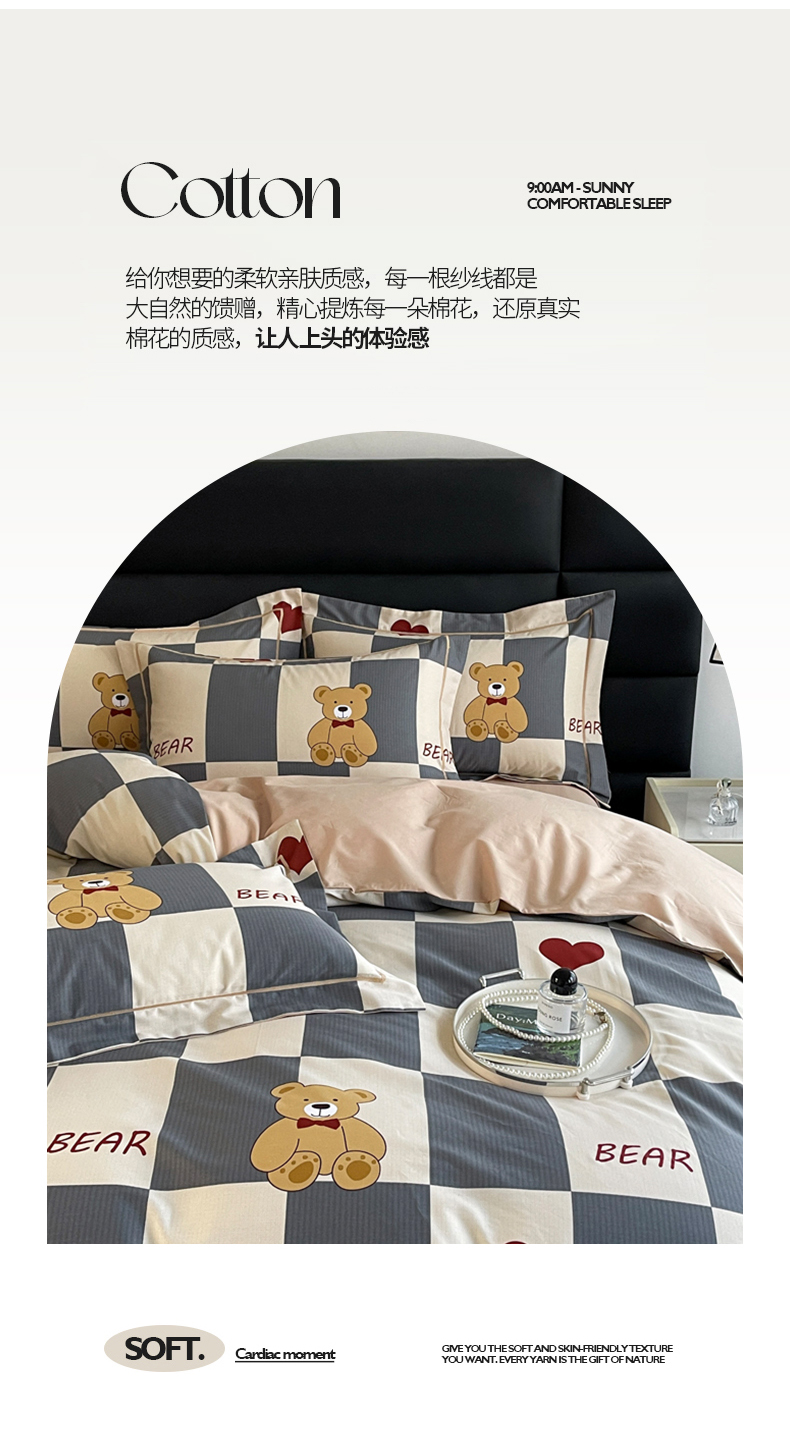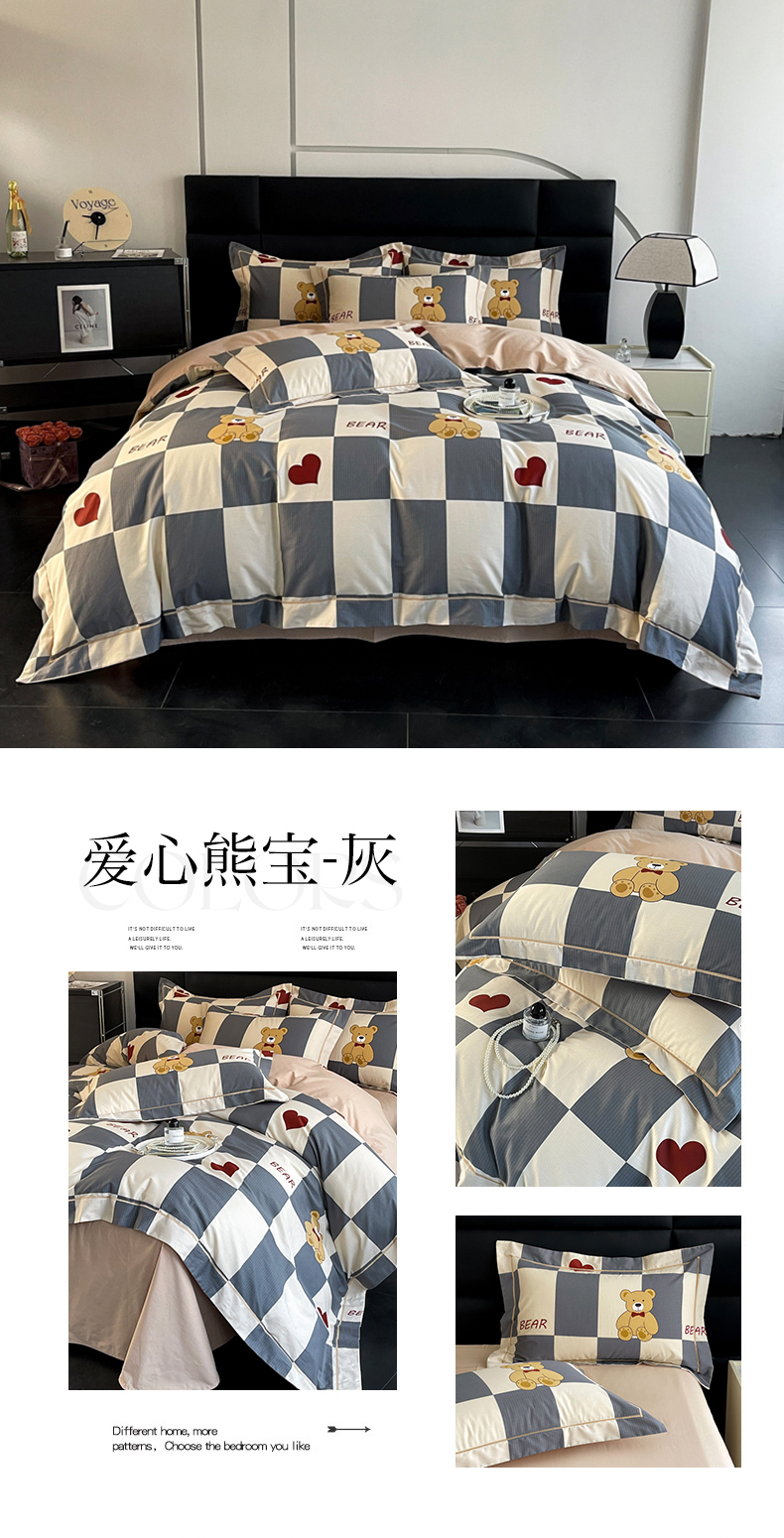 当前位置: 91家纺网 > 商品网购 > 床品套件 > 四件套 > 全棉普通四件套 > 7V 2024新款轻奢13376纯棉全棉喷气四件套 爱心熊宝-灰