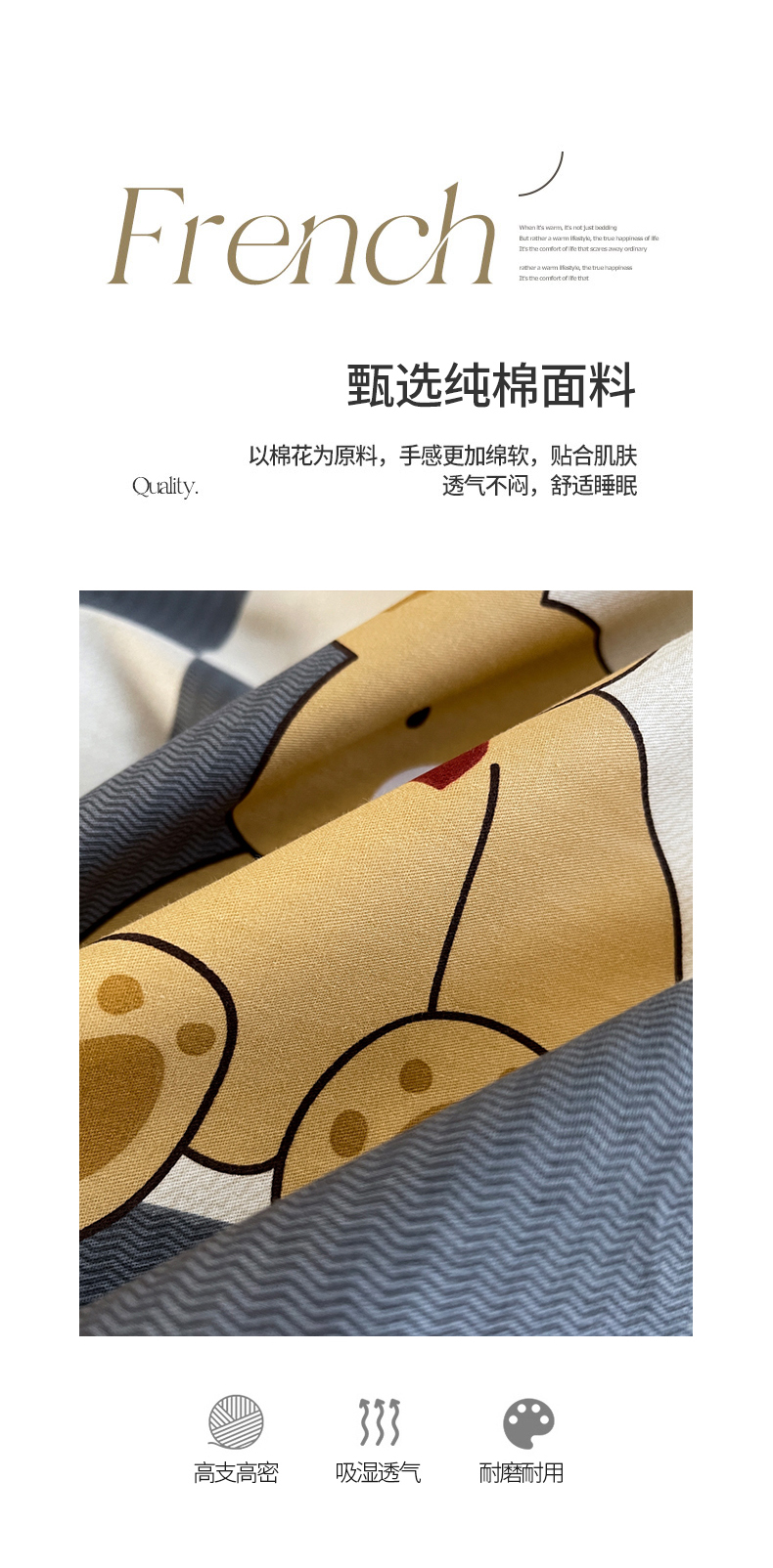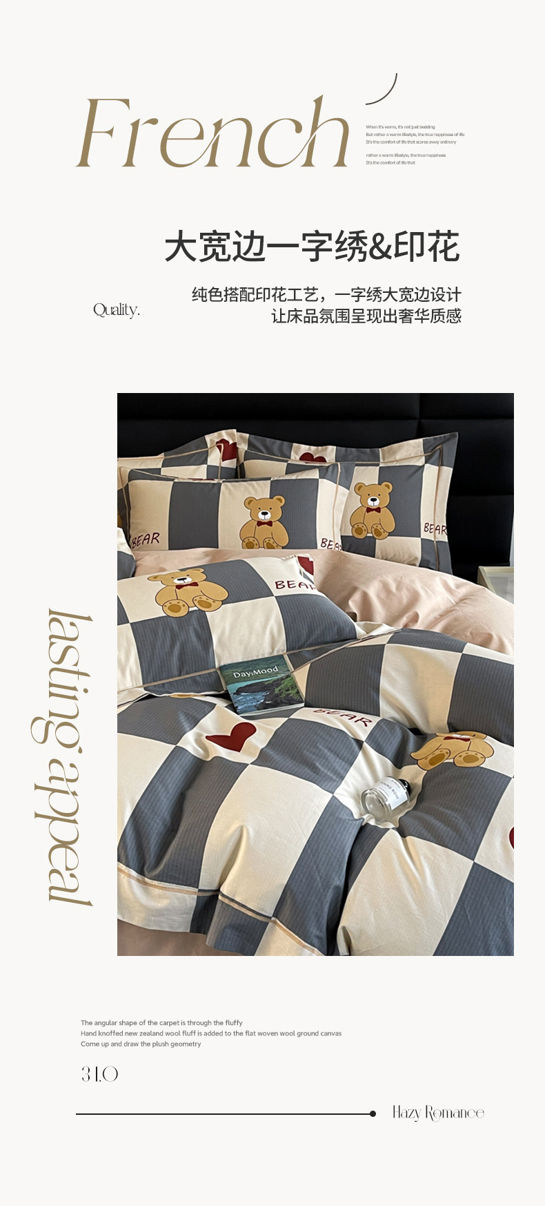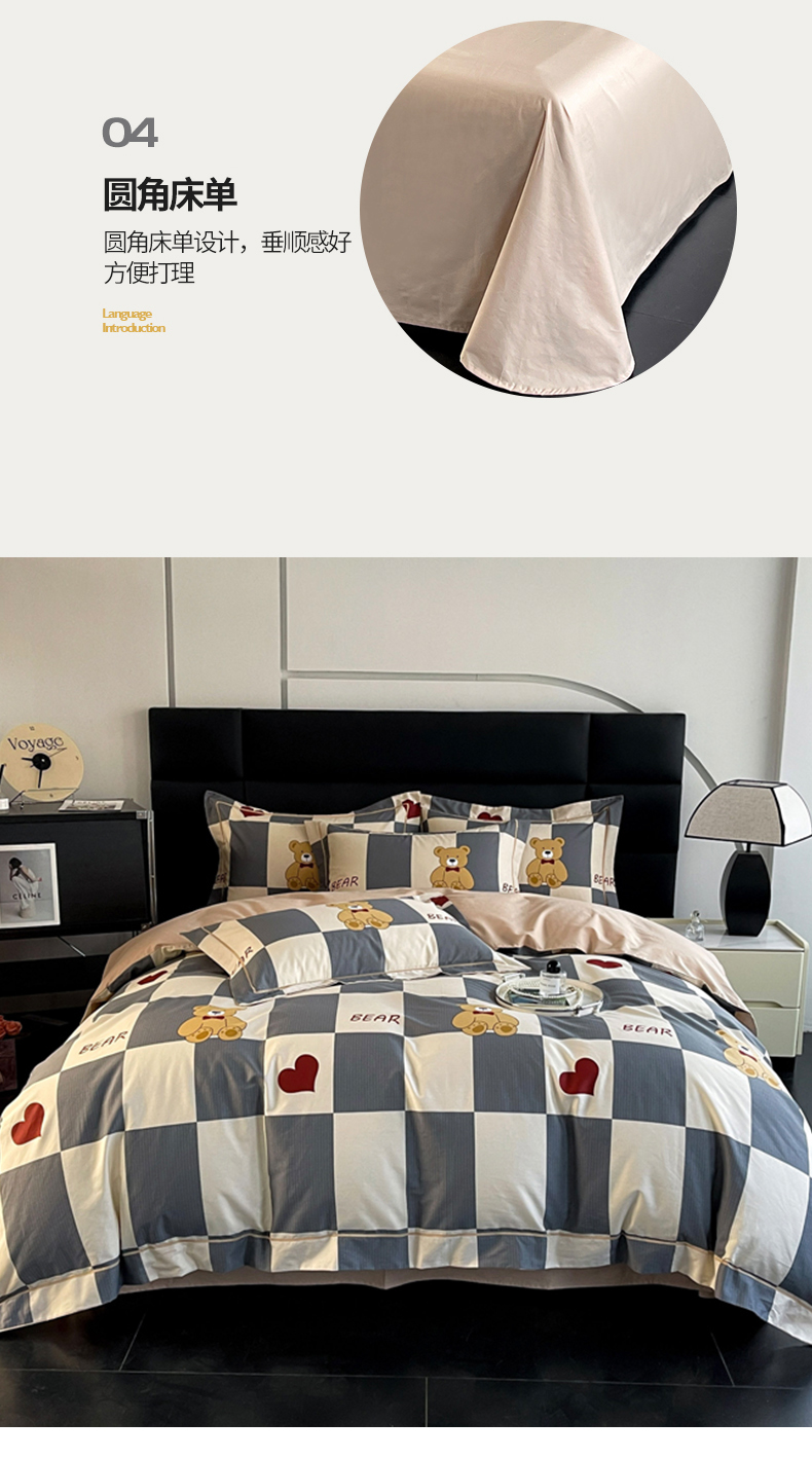 当前位置: 91家纺网 > 商品网购 > 床品套件 > 四件套 > 全棉普通四件套 > 7V 2024新款轻奢13376纯棉全棉喷气四件套 爱心熊宝-灰