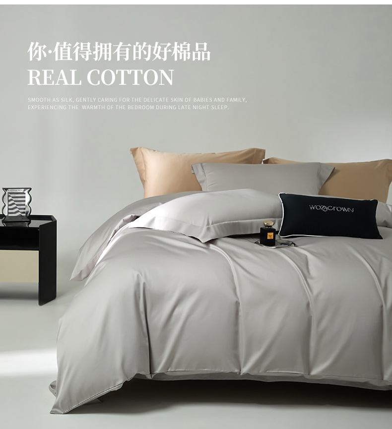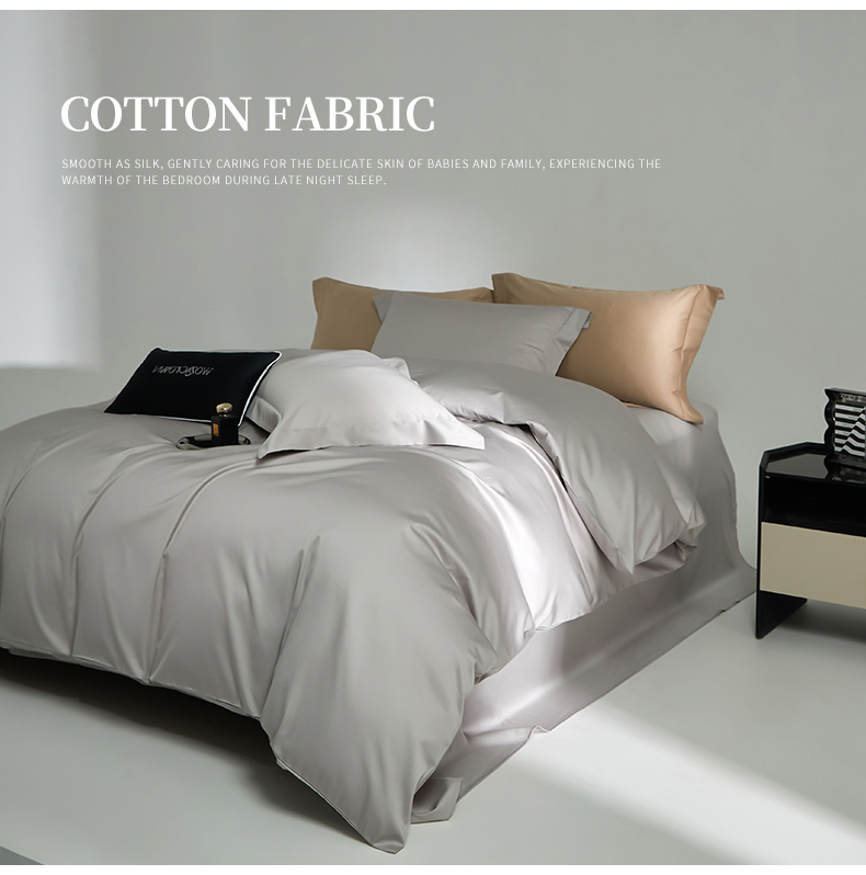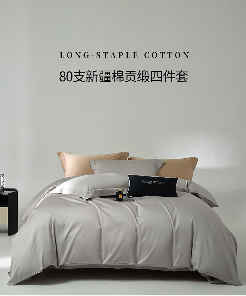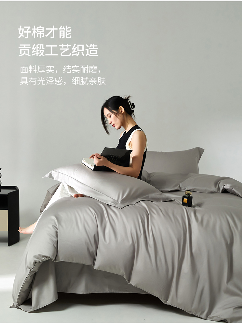 爱缦 2024新款80支新疆棉A类贡缎四件套-极简系列 流沙灰