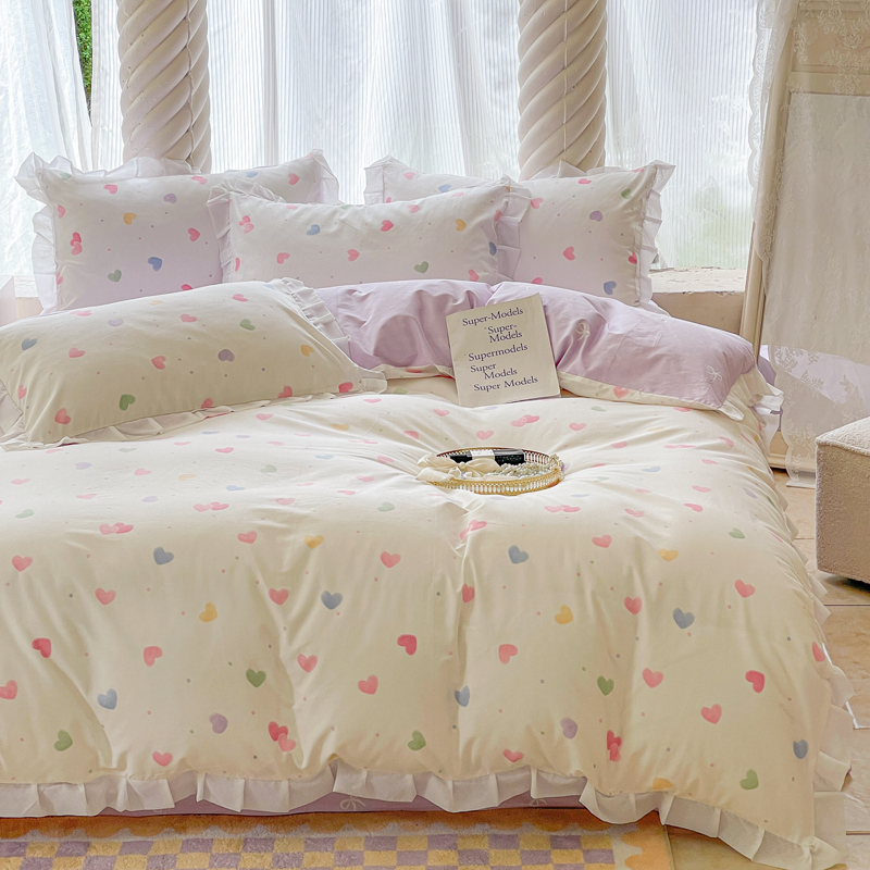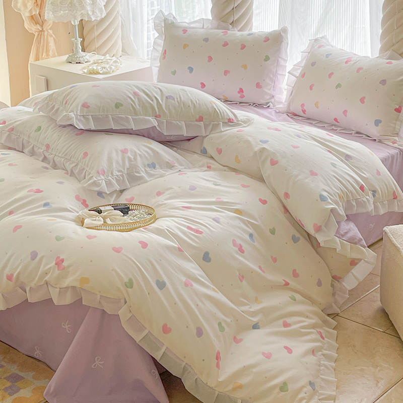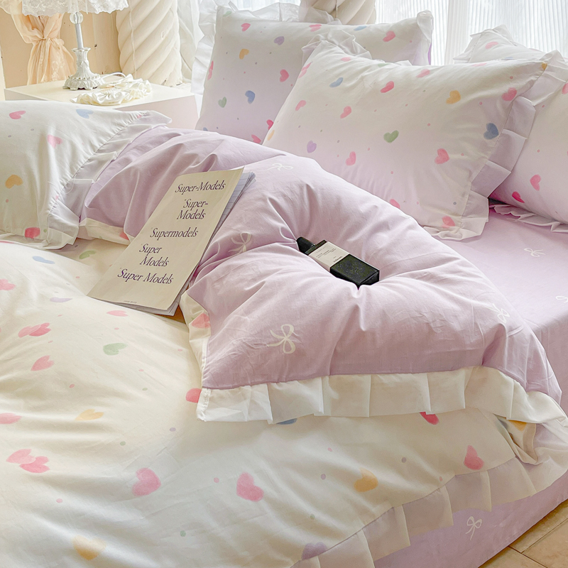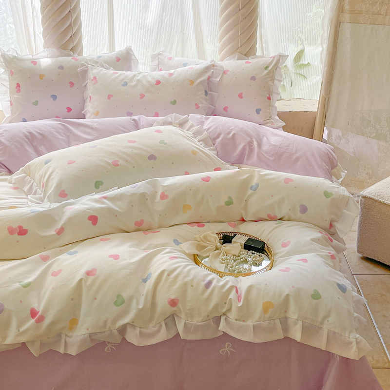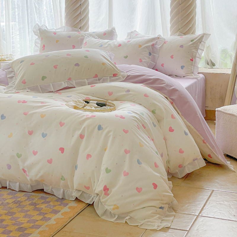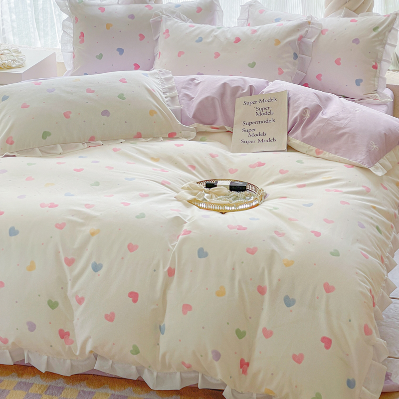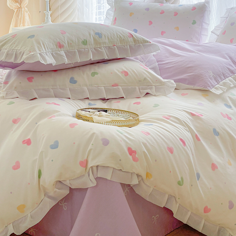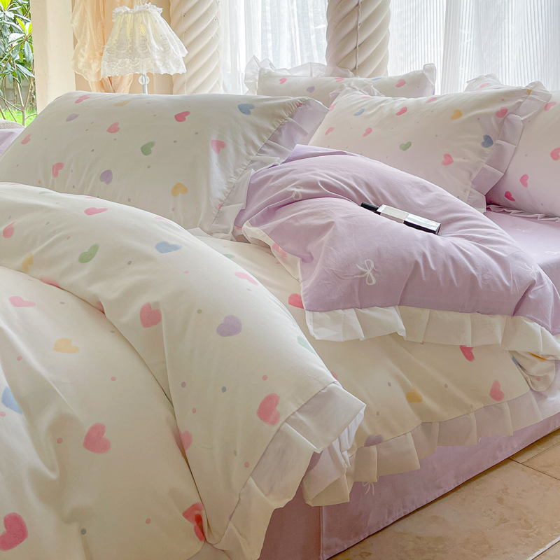 乐童家纺 2024新款13372全棉雪纺花边四件套直播热款 心之悦动