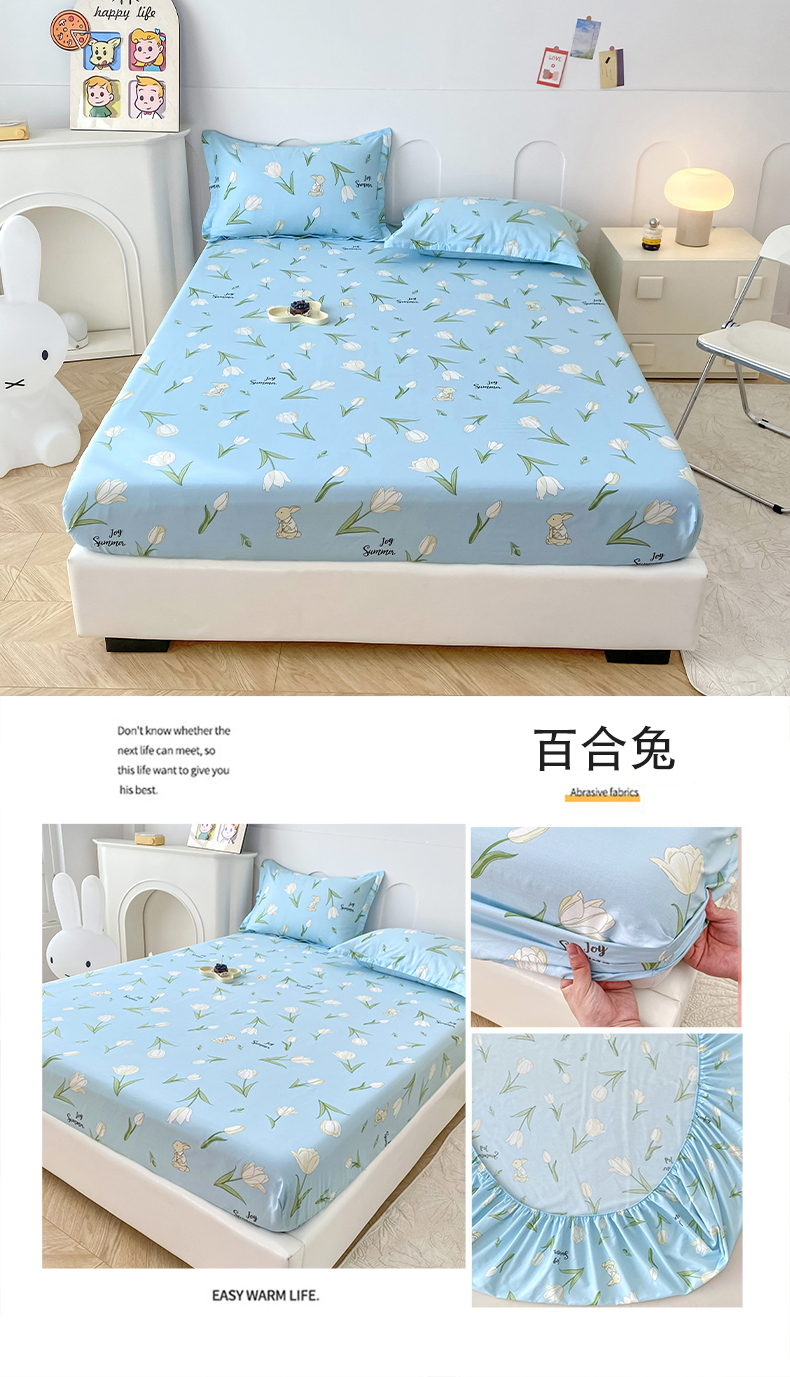 商品名称:帛织澜家纺 2026新款喷气12868系列纯棉印花单床笠 百合兔