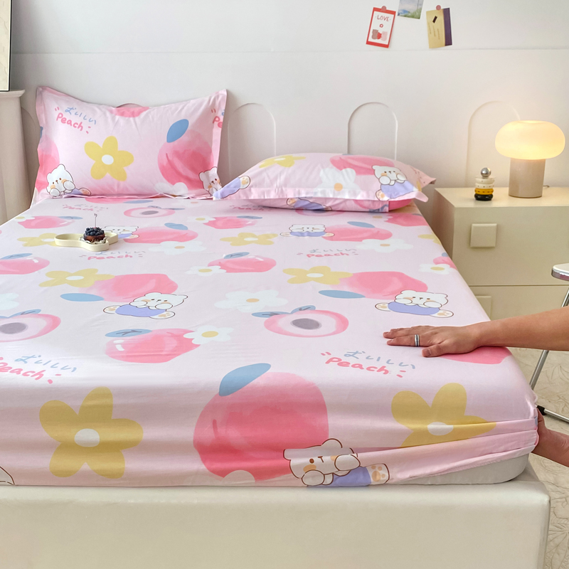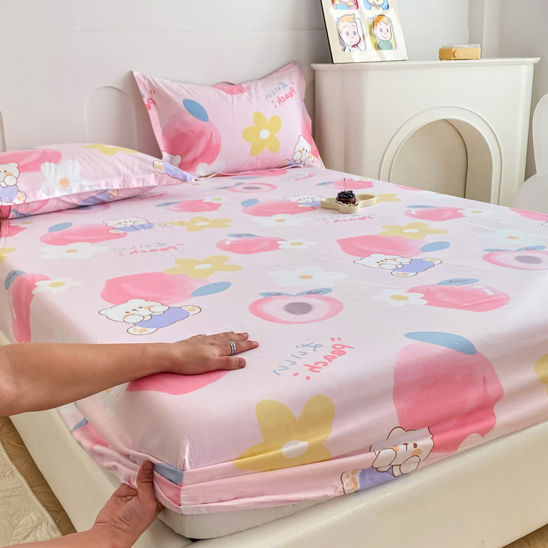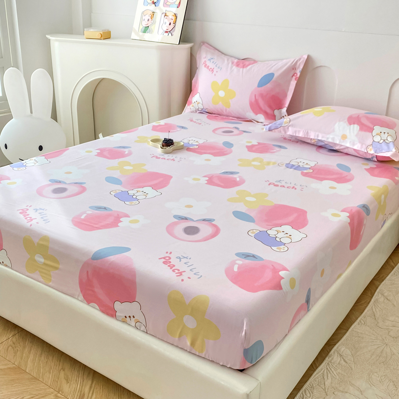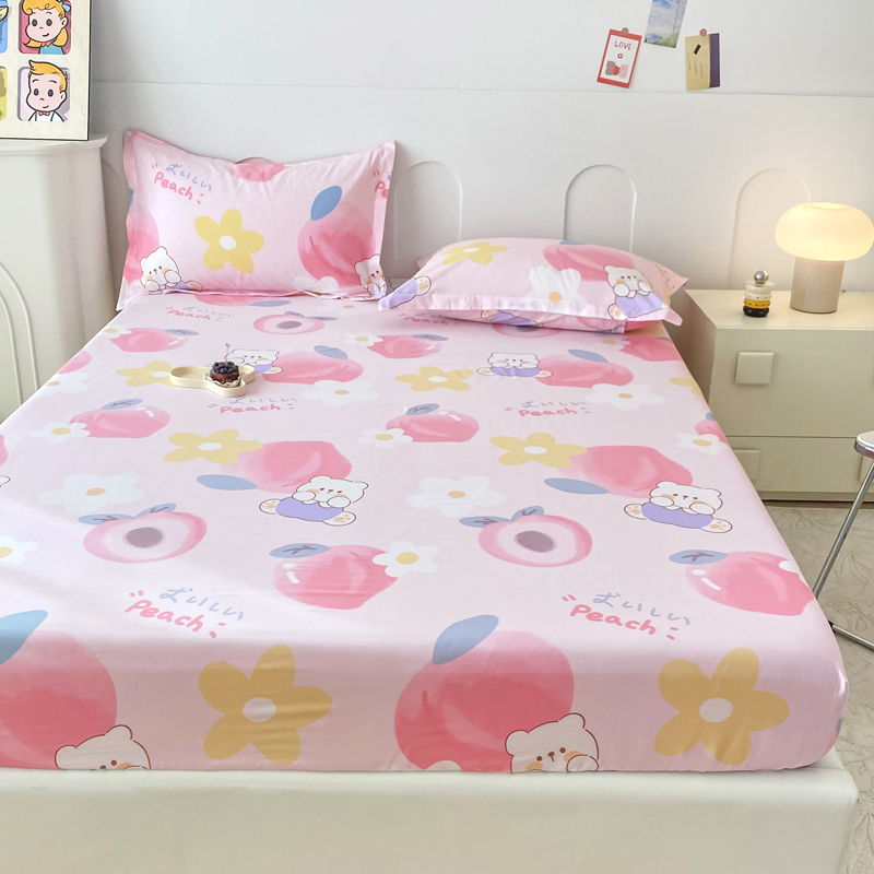 商品名称:帛织澜家纺 2025新款喷气12868系列纯棉印花单床笠 蜜桃桃