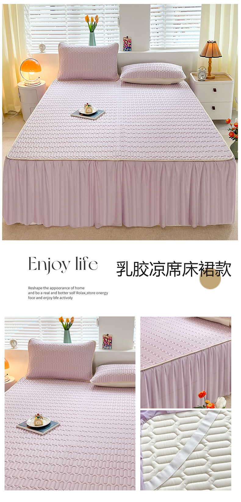 商品名称:爱洛 2024新款纯色床裙款乳胶凉席三件套凉感丝乳胶席 紫色