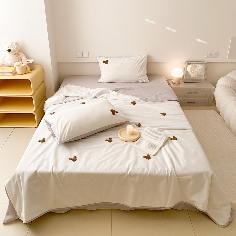 Mr.pig猪先生水洗棉 2024新款迪士尼全棉夏被四件套米奇毛巾绣夏凉被 米奇头双拼浅灰