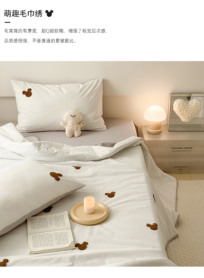 商品名称:Mr.pig猪先生水洗棉 2024新款迪士尼全棉夏被四件套米奇毛巾绣夏凉被 米奇头双拼浅灰