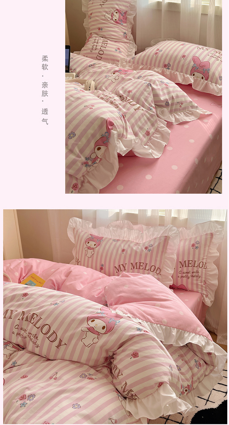 三朵 2024年全棉白色花边三丽鸥系列四件套 花边-花花美乐蒂