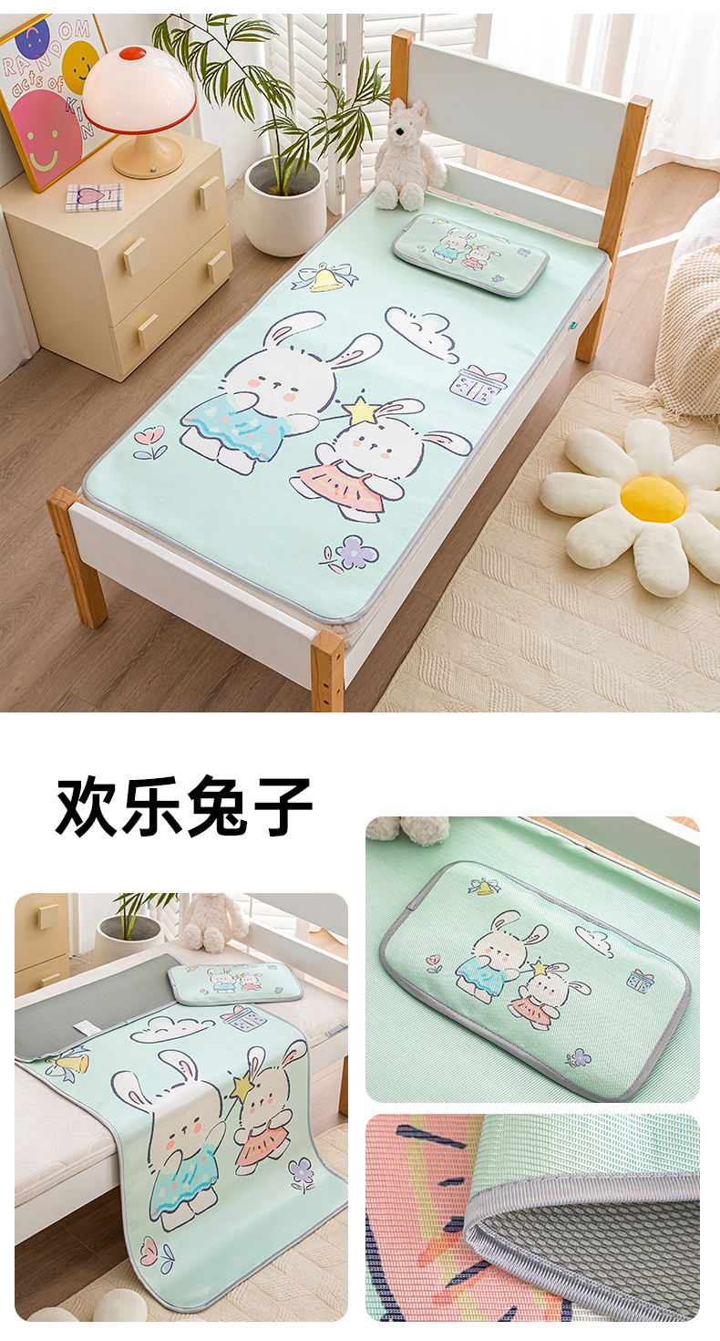 商品名称:欣品希家纺 2024新款A类冰丝印花儿童凉席三件套 欢乐兔子