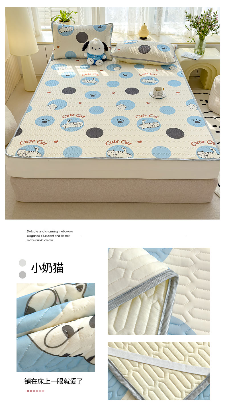 商品名称:伊人坊 2024新款A类凉感丝乳胶凉席三件套 小奶猫