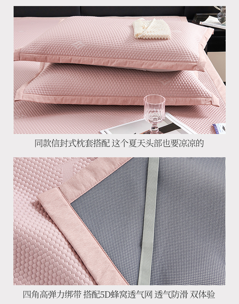 商品名称:yyds 2024新款凉感丝凉感席冰感席冰感丝刺绣凉席三件套凉席竹席蚊帐空调席学生席 直角款 字母-粉