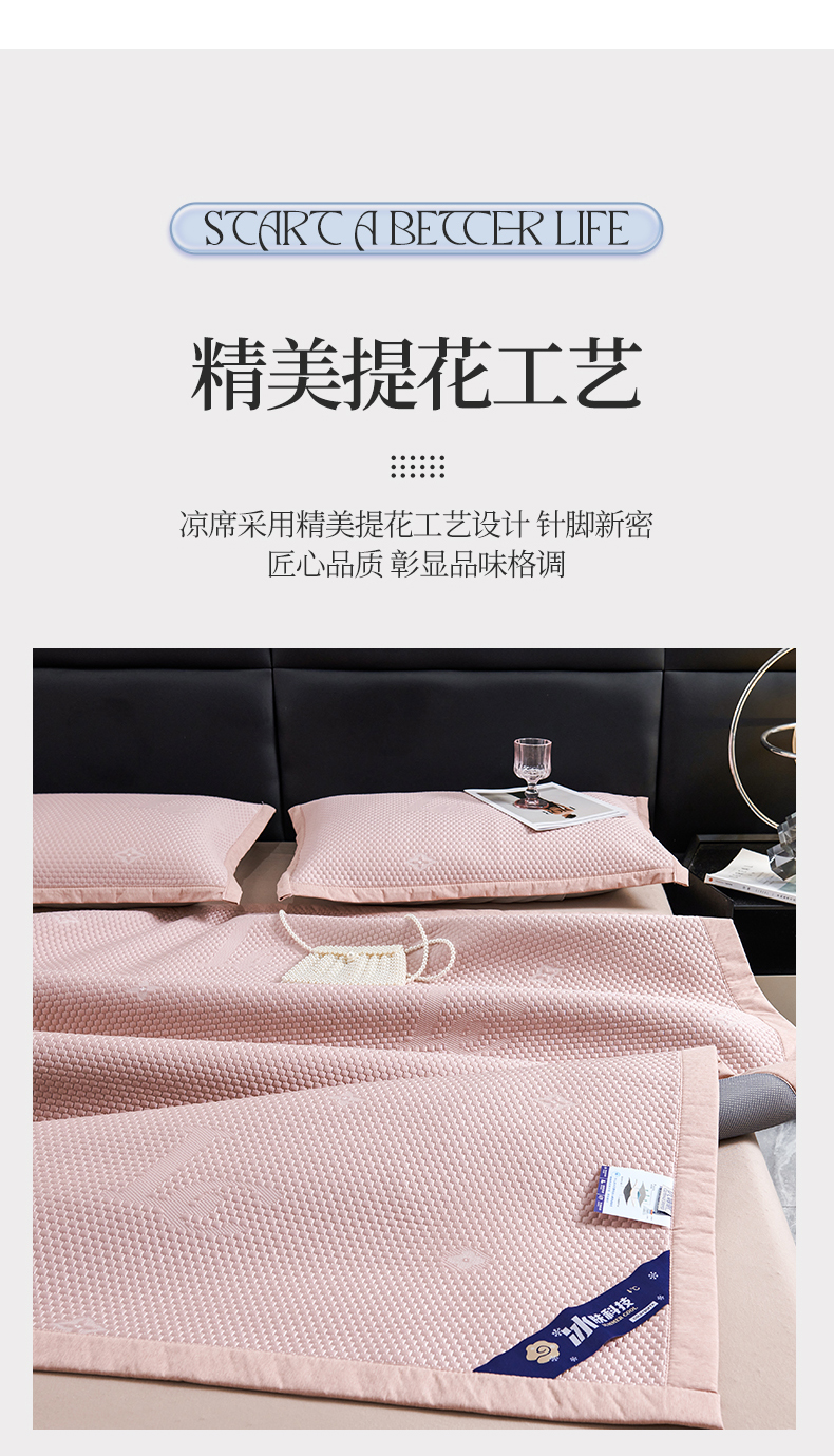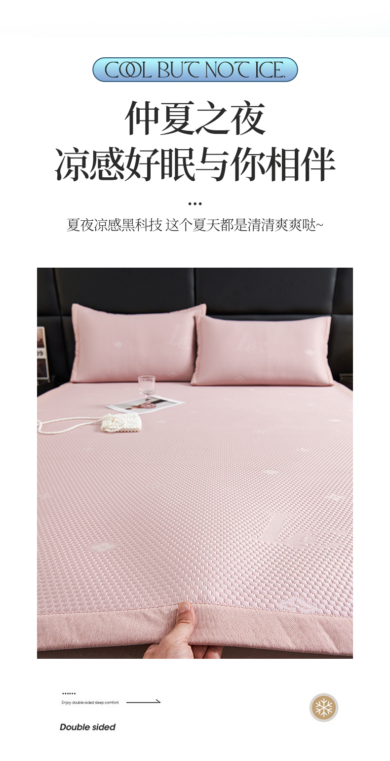 yyds 2024新款凉感丝凉感席冰感席冰感丝刺绣凉席三件套凉席竹席蚊帐空调席学生席 直角款 字母-粉