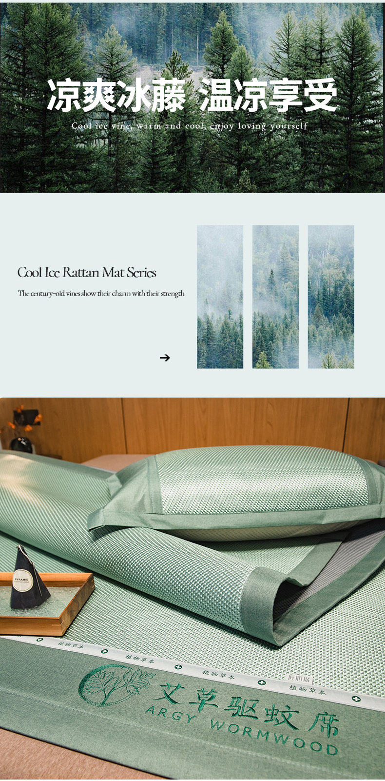 商品名称:全季家居 2024新款A类艾草驱蚊冰藤席 艾草-碧绿