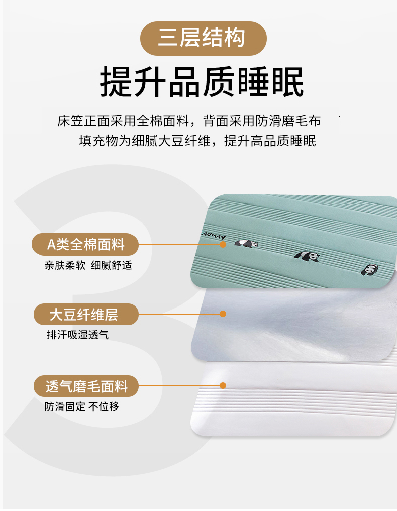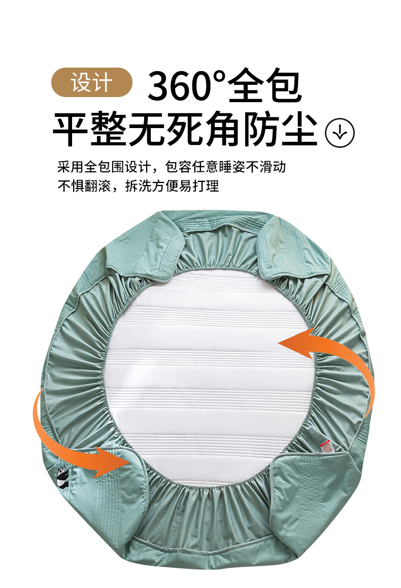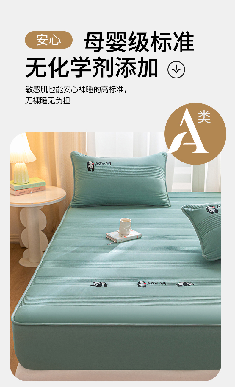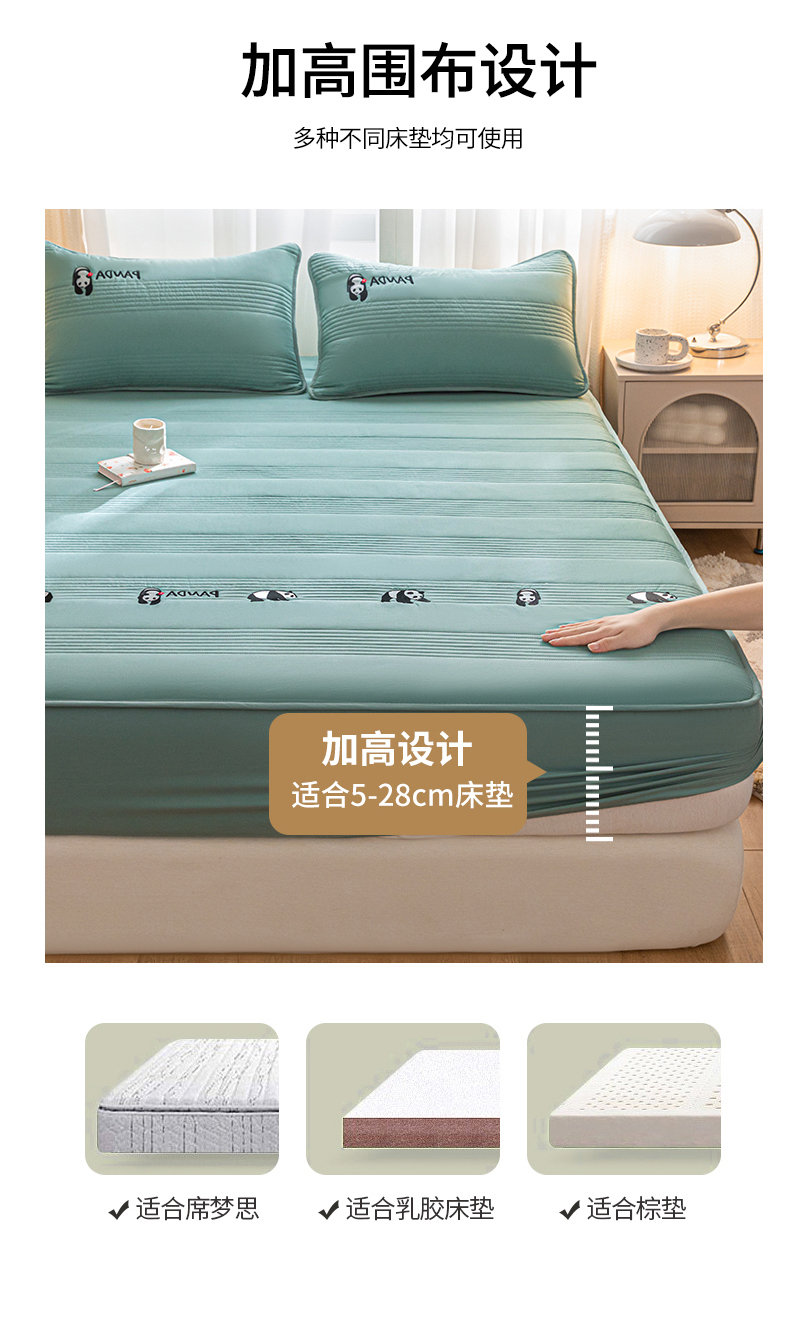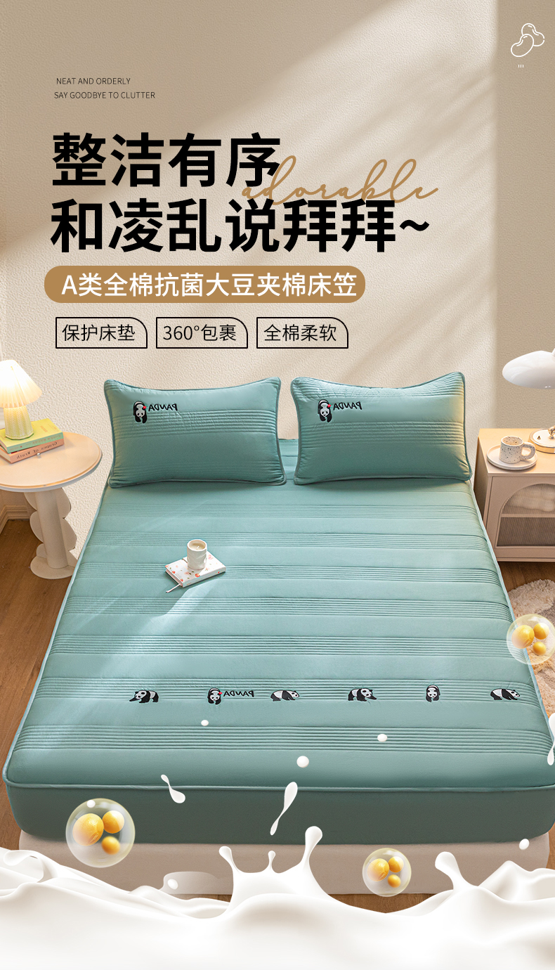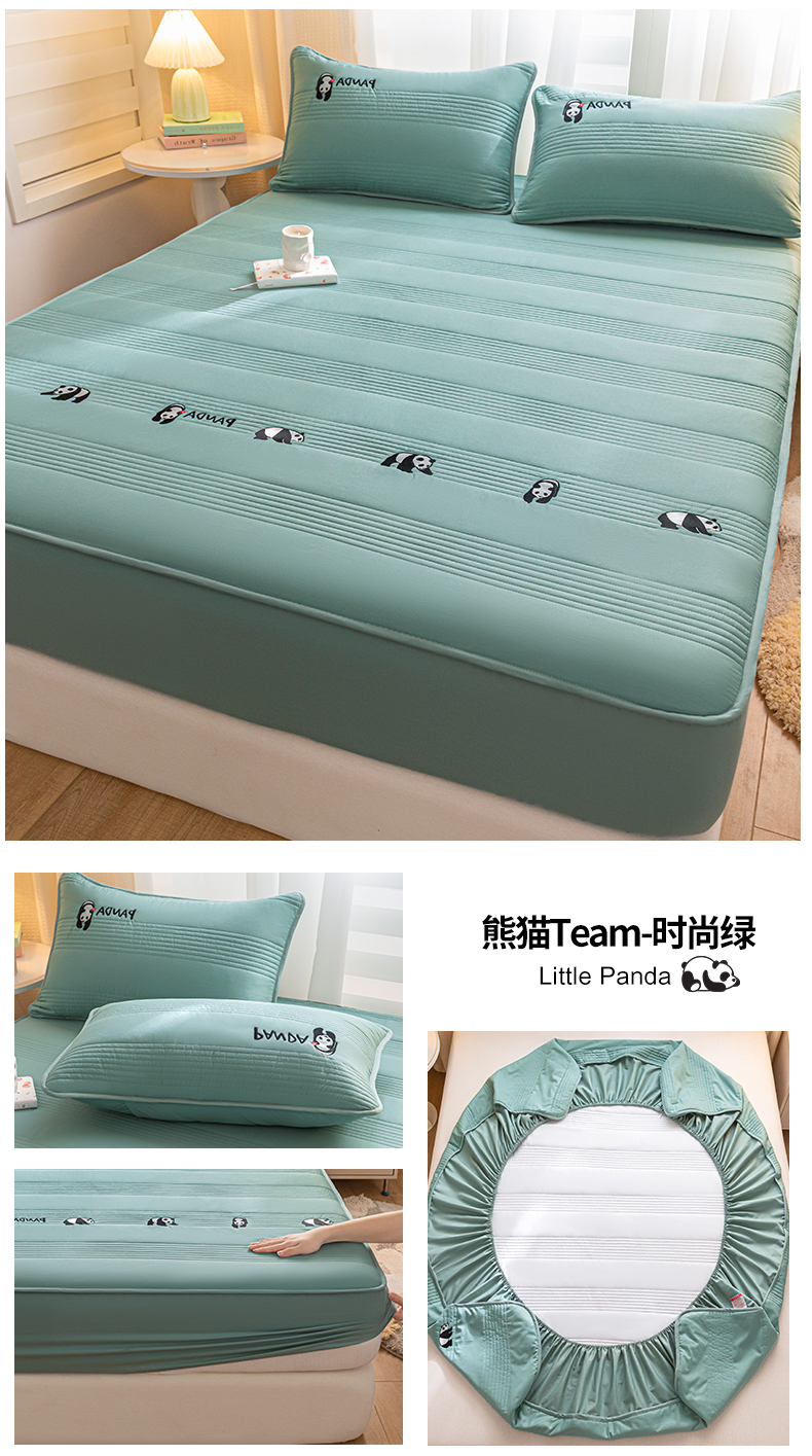 • 91家纺网 家纺一手货源 找家纺 鑫钰 2024全棉大豆夹棉床笠 熊猫Team-时尚绿