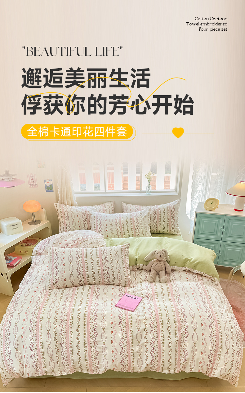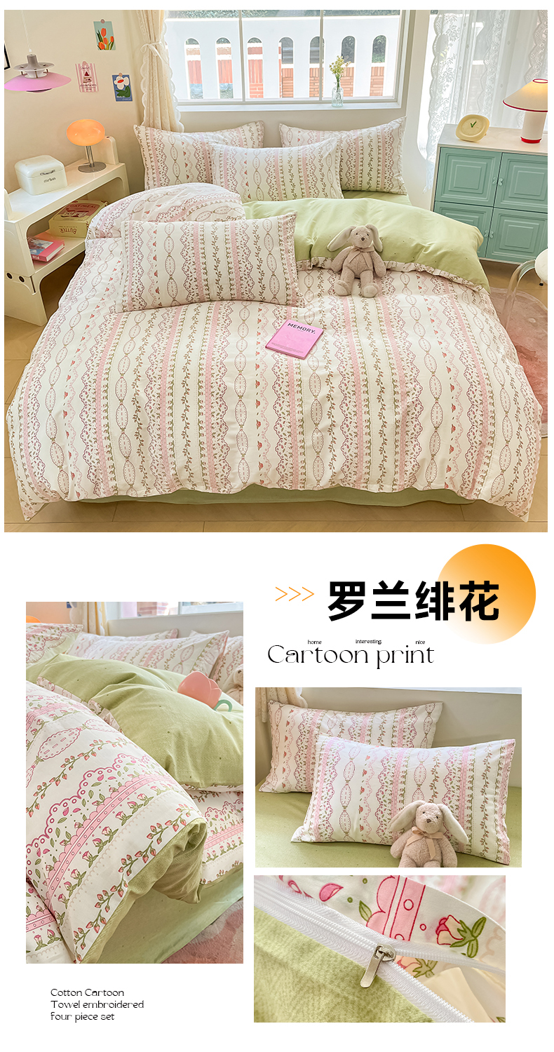 当前位置: 91家纺网 > 商品网购 > 床品套件 > 四件套 > 全棉普通四件套 > 川悦生活 2024爆款13372纯棉全棉卡通小清新四件套学生宿舍三件套罗兰绯花